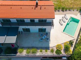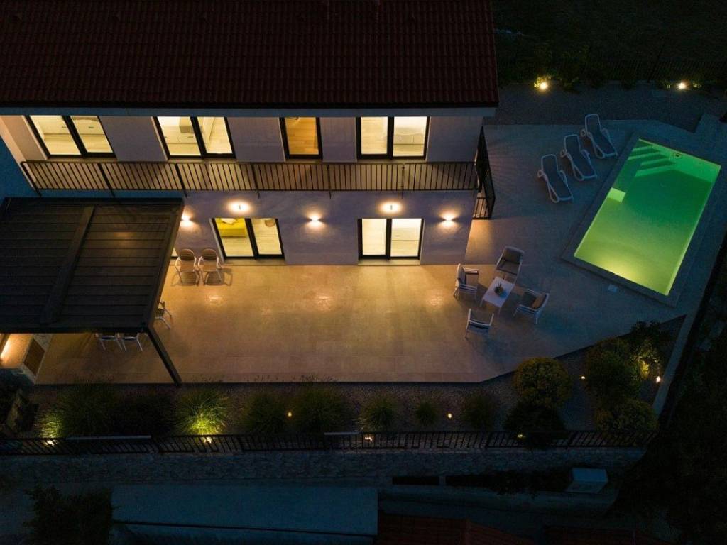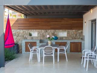 Двор, достаточно большой для комфортного проживания, украшен средиземноморскими растениями и включает крытую террасу с летней кухней и парковкой на две машины. Оснащение включает в себя кондиционеры во всех комнатах, камин на твердом топливе, высококачественную керамику, алюминиевые окна, теплый пол с тепловым насосом, а также современную мебель и оборудование. Вилла продаётся полностью оборудованной и меблированной.