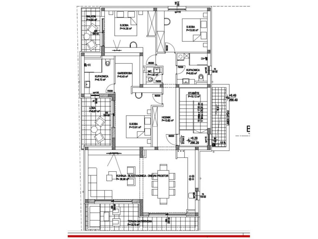 Продается современная квартира-пентхаус площадью 126,88 м, расположенная на первом этаже качественного нового дома в тихом поселке Тугаре, недалеко от Сплита, Строжанаца и Омиша.