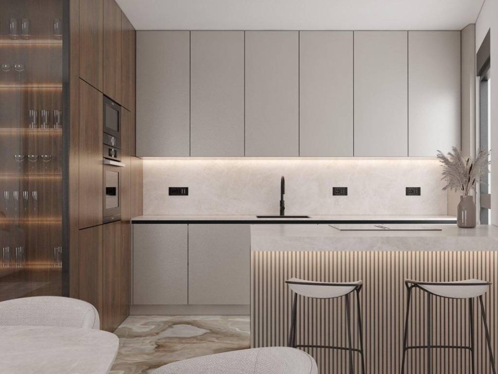В цокольном этаже находится спальня, частный тренажерный зал, сауна, ванная комната, прачечная и кладовая. На первом этаже находится просторная гостиная со столовой и кухней, спальня с ванной комнатой и отдельный гостевой туалет.
