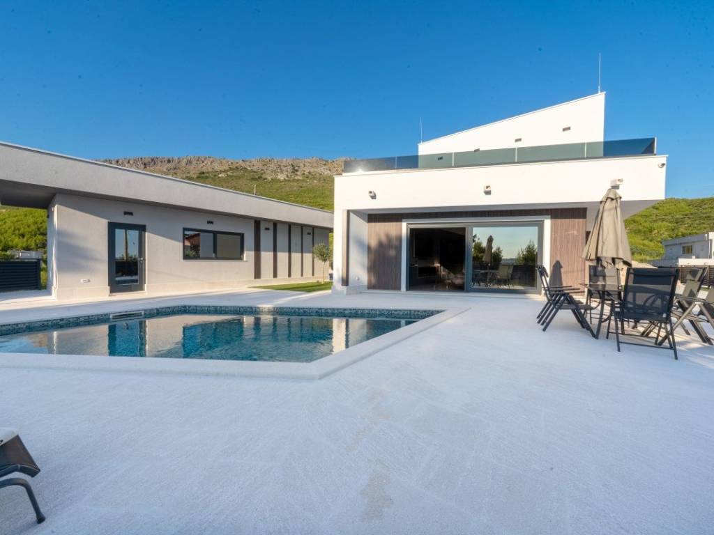 Эта современная вилла расположена в тихом месте недалеко от Сплита, на участке площадью 830 м, с общей жилой площадью около 190 м.