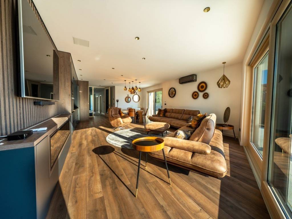 Недвижимость была построена в 2024 году и ни разу не заселялась. Вилла имеет систему подогрева пола, а также кондиционеры в каждой комнате для дополнительного комфорта. Перед домом есть два гаража, а за зданием парковка на четыре машины.
