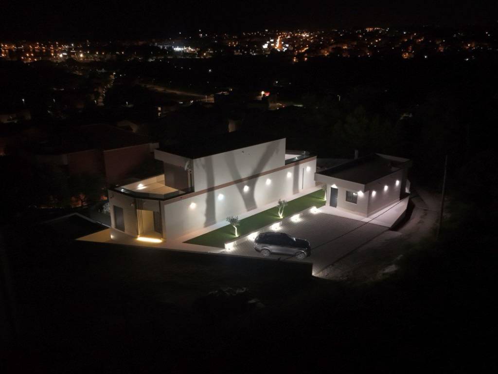 Она простирается на два этажа, с большой террасой, солнечной террасой и бассейном, а также вспомогательным зданием во дворе, спроектированным как летняя кухня для отдыха и общения.