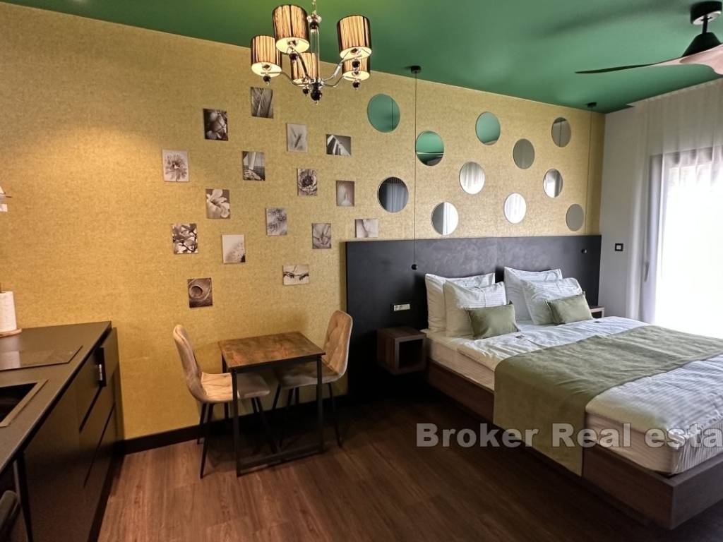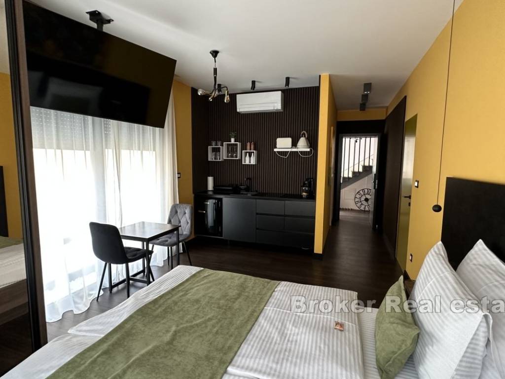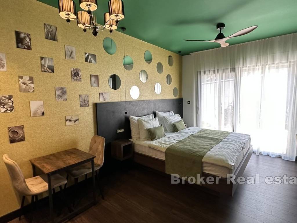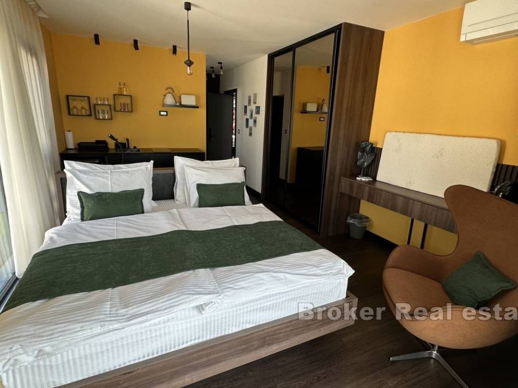 Продается недавно построенная многоквартирная вилла, состоящая из семи квартир и одной большой квартиры с двумя спальнями. Вилла расположена на участке площадью 880 м и занимает три этажа.