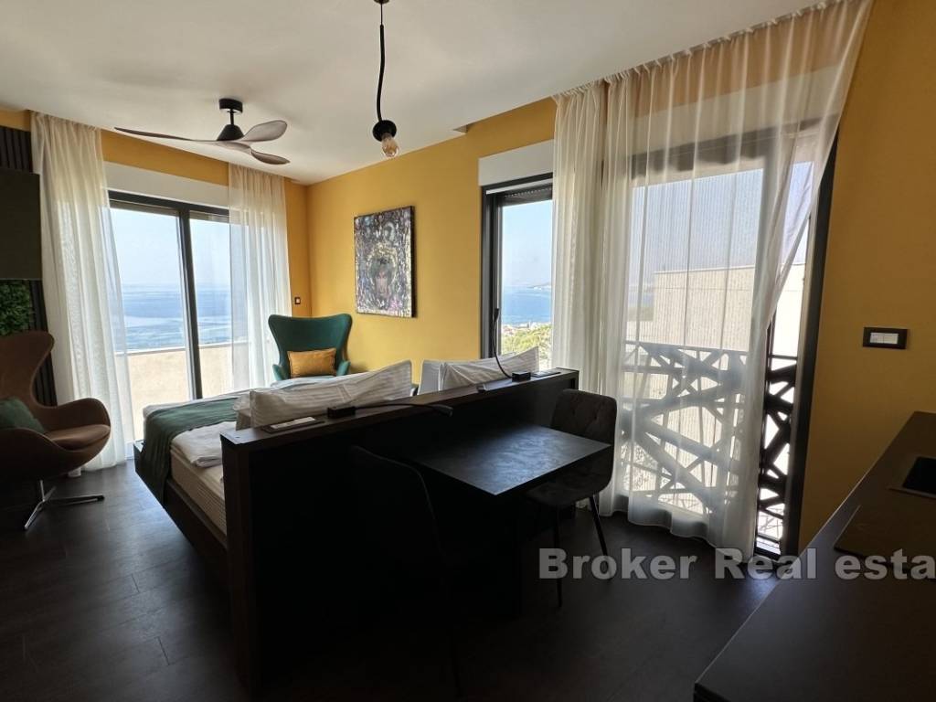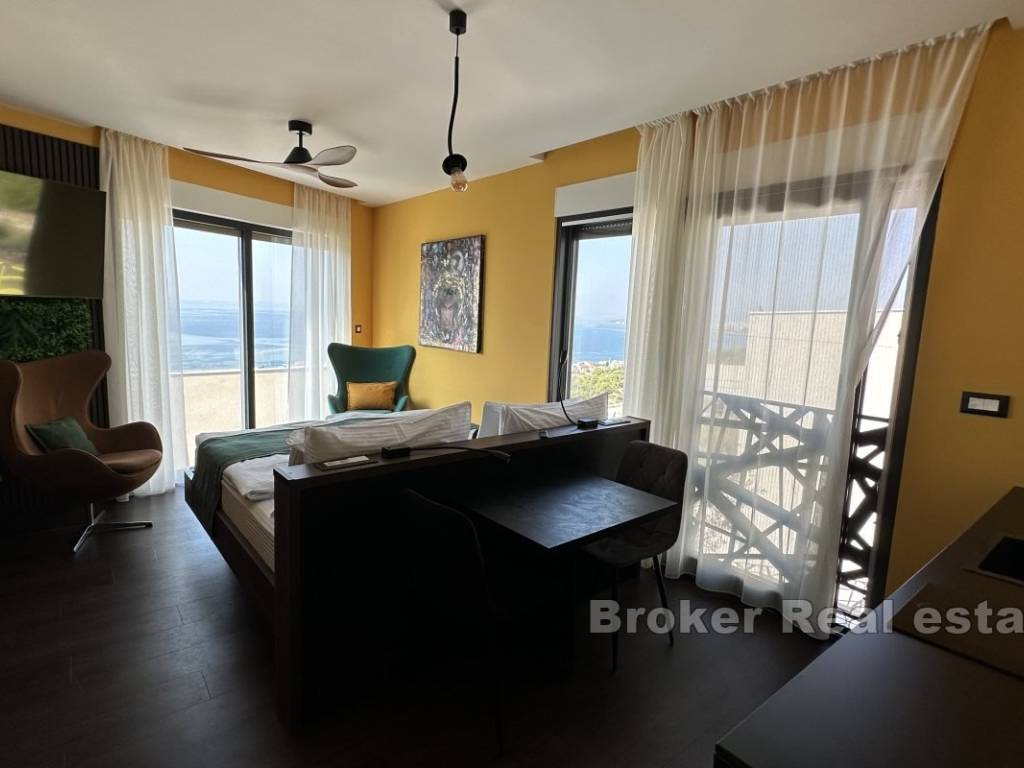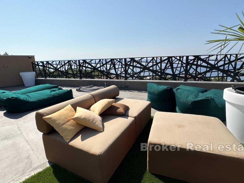 Внутренняя лестница ведет на террасу на крыше площадью 170 м, откуда открывается потрясающий вид на море.
