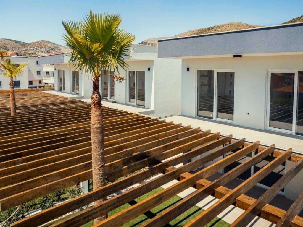 Близость к центру города позволяет легко добраться до всех важных объектов, включая магазины, рестораны, школы, детские сады, аптеки, а также известные исторические достопримечательности Трогира, находящиеся под защитой ЮНЕСКО. Это делает квартиру идеальным выбором для тех, кто хочет наслаждаться всеми преимуществами городской жизни с комфортом и покоем собственного дома.