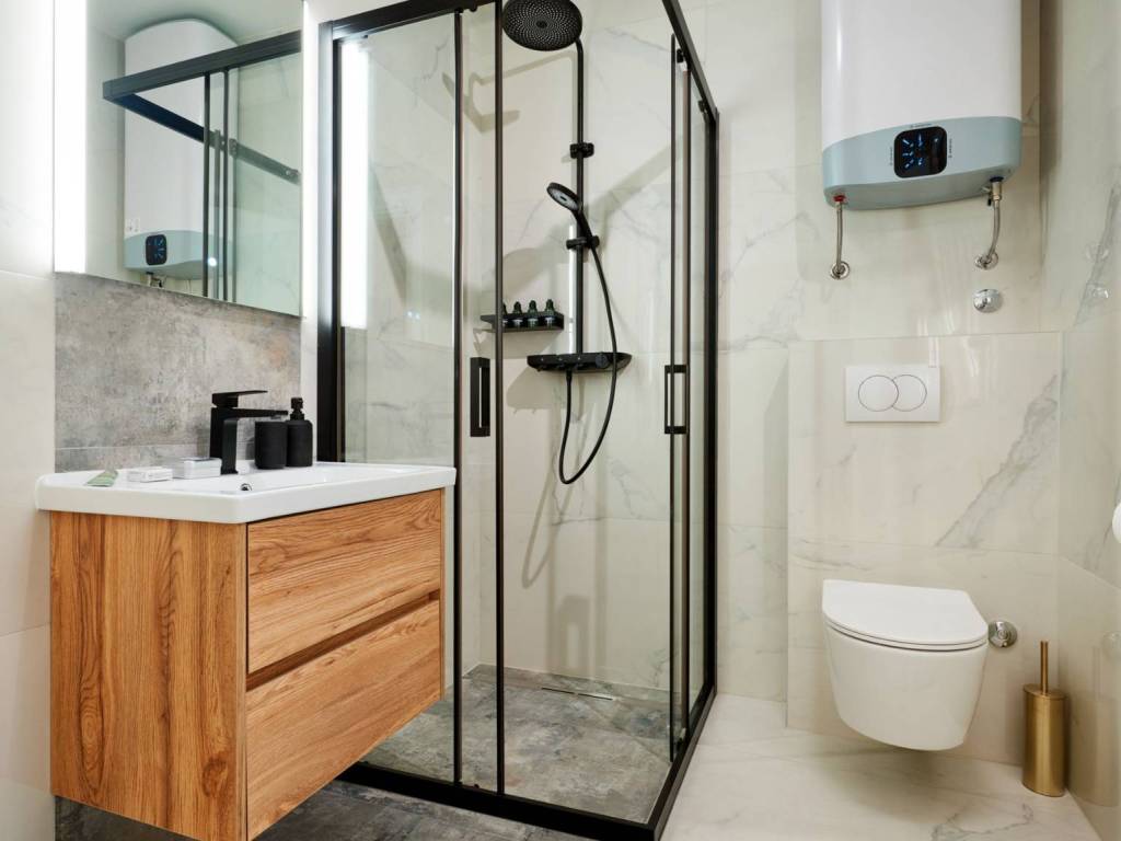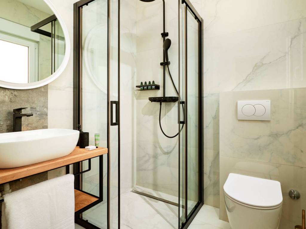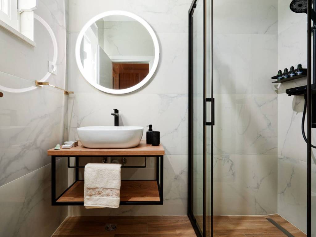 На первом этаже второго корпуса расположена мини-кухня и 3 спальни, каждая со своей ванной комнатой. На верхнем этаже находится кухня с гостиной и столовой, а также 2 спальни со своими ванными комнатами.