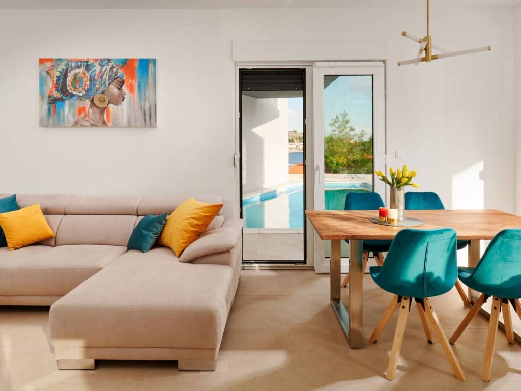 Продается недавно построенная вилла на участке между Сплитом и Омишем. Хотя он не находится в первом ряду от моря, близость к морю, пляжам и видам на открытое море украшают этот объект ценными и востребованными характеристиками.