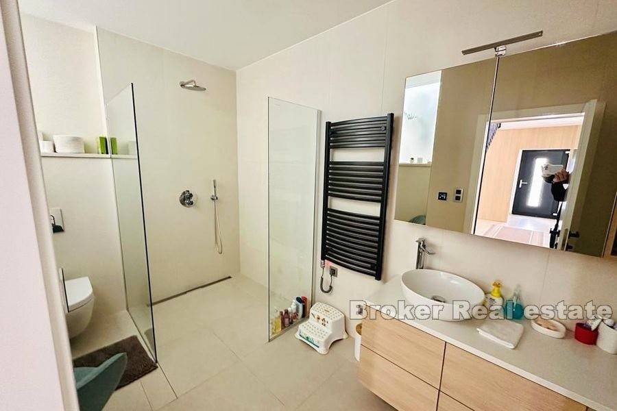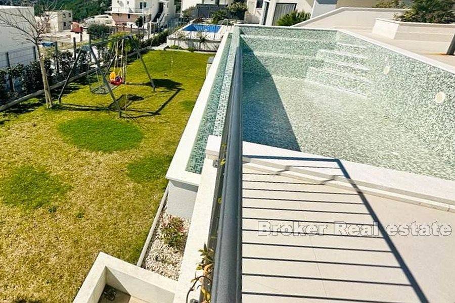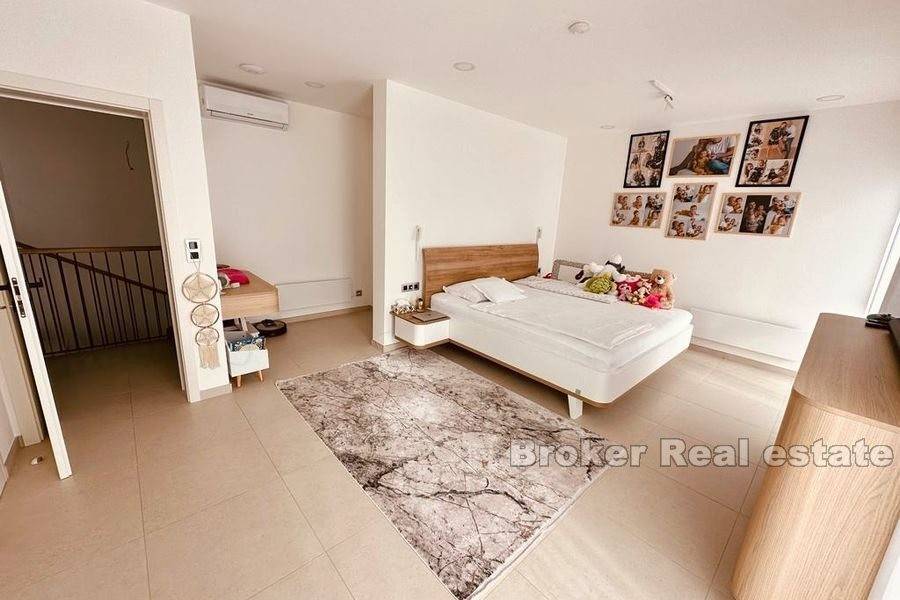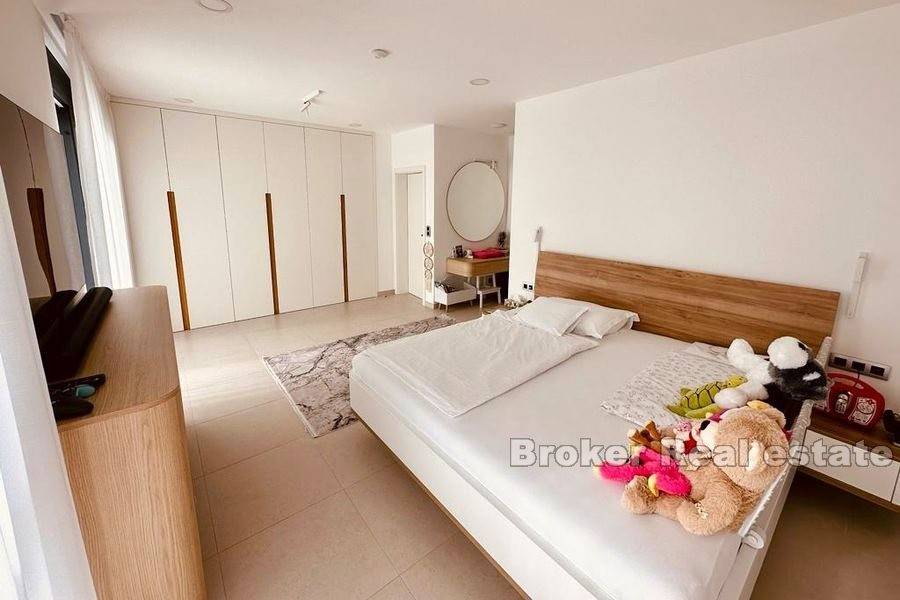 Роскошная современная вилла в непосредственной близости от Макарской Ривьеры с видом на море. Расположен на 700 м2 земельного участка, общая жилая площадь 300 м2 на двух этажах.