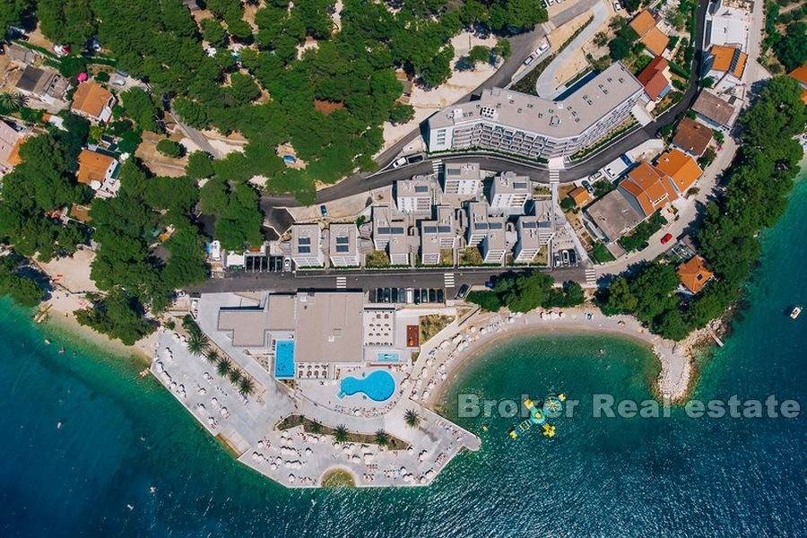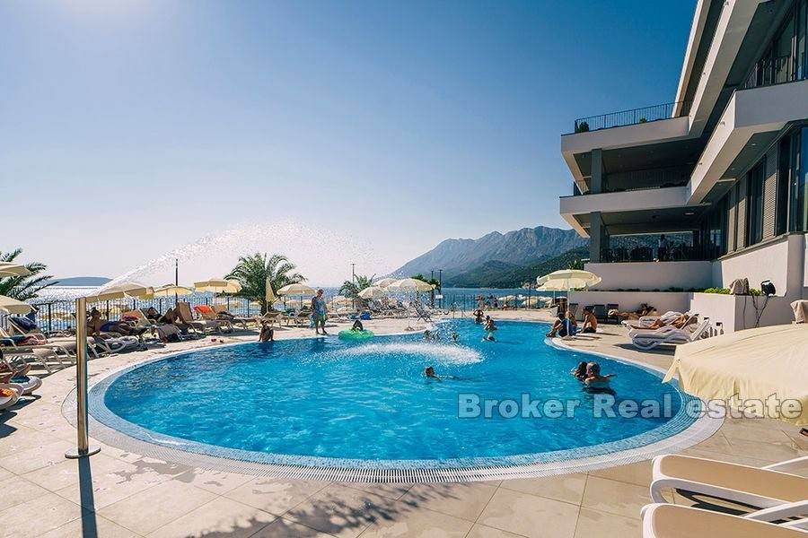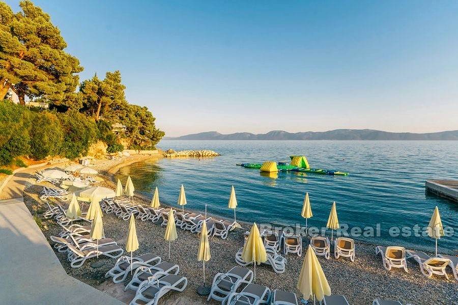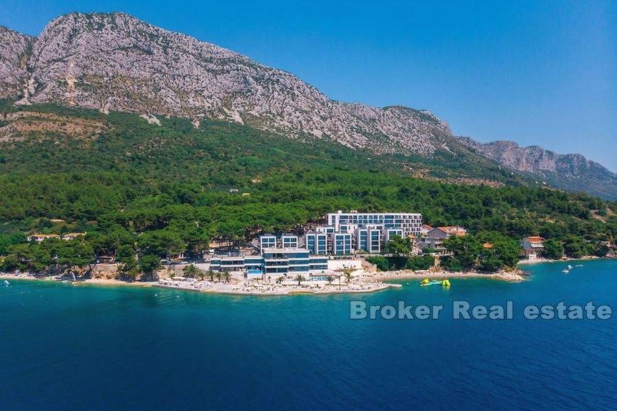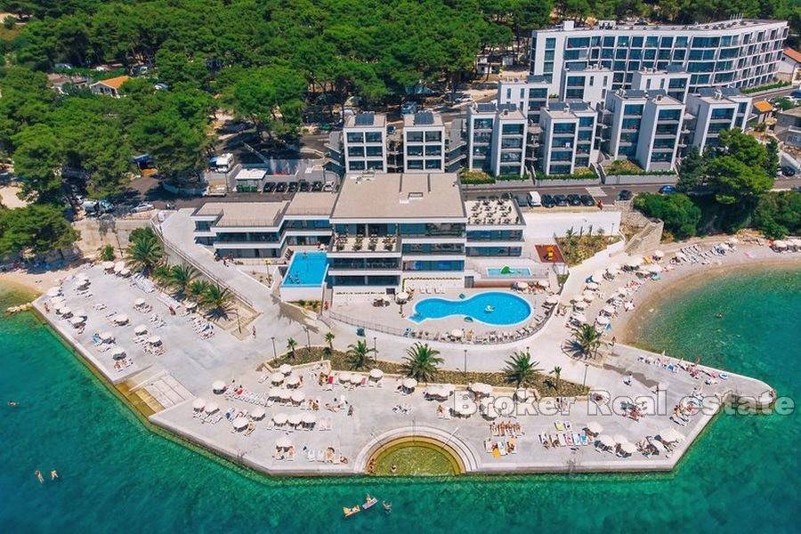 Недавно построенный курортный отель (2018), окруженный вековым сосновым лесом и великолепными галечными пляжами, очаровывает своим современным видом и идеальным расположением у моря. Курорт расположен между двумя крупными туристическими центрами городами Макарска и Дубровник. Этот курорт из нескольких туристических объектов расположен на 12 000 м2 земли с респектабельными 180 номерами. Разработанный как место для семейного отдыха с особым акцентом на самых маленьких, он имеет 3 открытых бассейна. Большой бассейн с аттракционами, внешний пейзажный бассейн со снэк-баром, откуда открывается прекрасный вид, и детский бассейн, приспособленный для всестороннего использования. Вся остальная информация исключительно в офисе брокерского агентства.