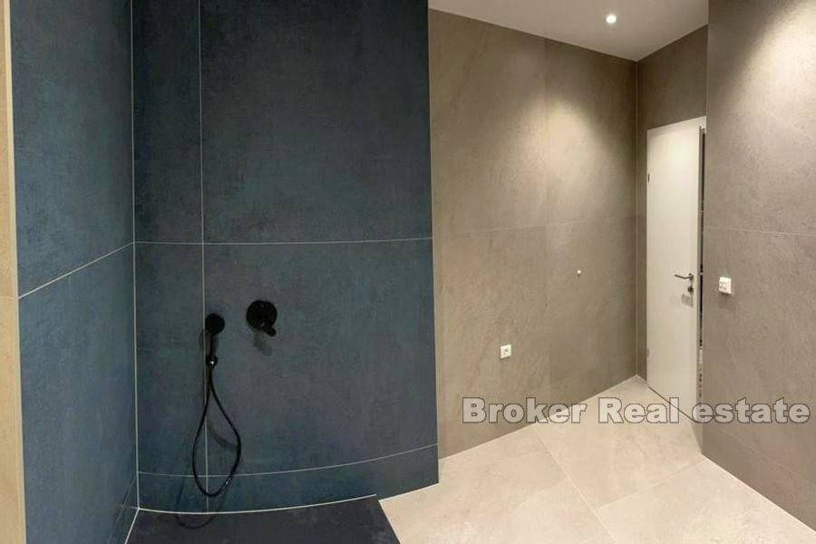 Продается красивая трехкомнатная квартира с жилой площадью 111м2, в центре Макарски с видом на море. Квартира состоит из большой кухни со столовой, из которой есть лоджия с беспрепятственным видом на Макарскую Ривьеру, трех спален и двух ванных комнат. Он оснащен высококачественными материалами, включающими термо-гидро-звукоизоляцию, интеллектуальное освещение, противовзломные входные двери и стеклянные проемы с теплоизоляцией. В квартире также есть два гаражных места, откуда в квартиру можно попасть прямо на лифте. Благодаря своему привлекательному расположению, эта недвижимость представляет собой идеальный вариант для повседневной жизни, а также предлагает бесчисленные возможности для инвестиций в туризм. Квартира продается без мебели и может быть заселена немедленно.