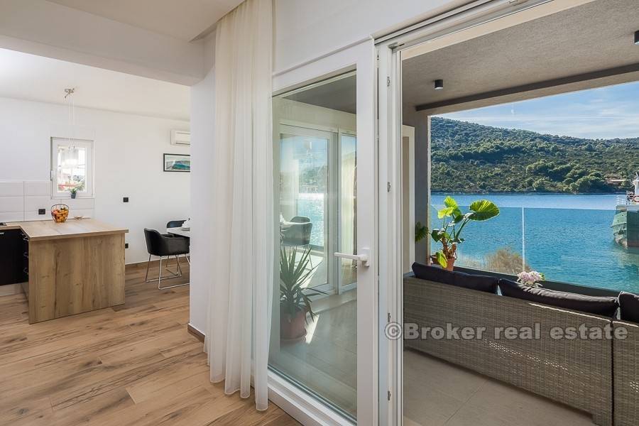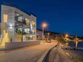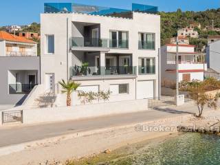 Элегантная, ориентированная на юг вилла в первом ряду от моря, расположенная в тихой рыбацкой деревушке, недалеко от города Трогир. Вилла расположена на трех этажах, общей площадью 330 м2 жилой площади, размещенной на участке площадью 410 м2.