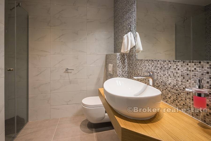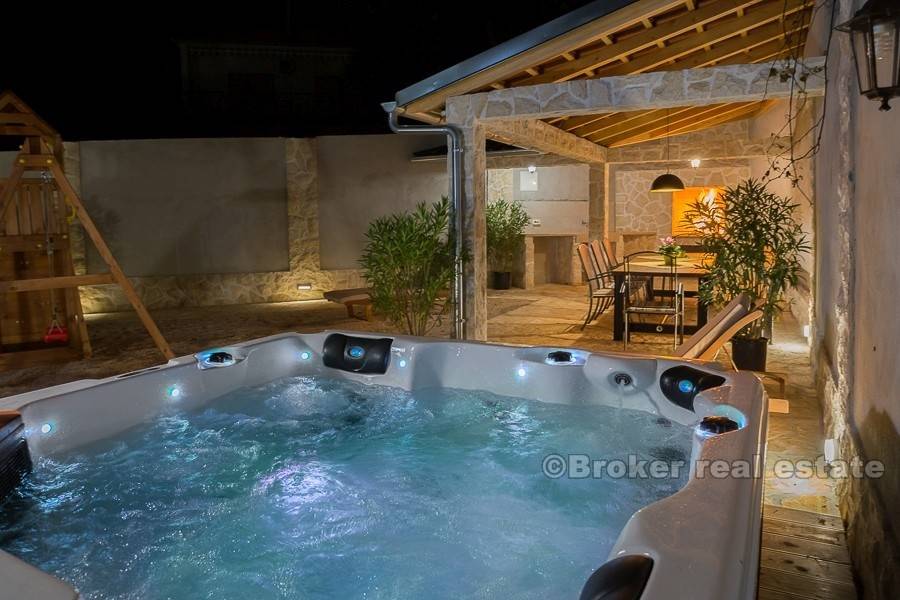 Собственность полностью кондиционирована и оборудована полом с подогревом, поэтому его можно использовать либо в жаркие летние месяцы, либо в зимний период. Расстояние до города Трогир составляет 15 км, а до международного аэропорта Сплит 25 км.