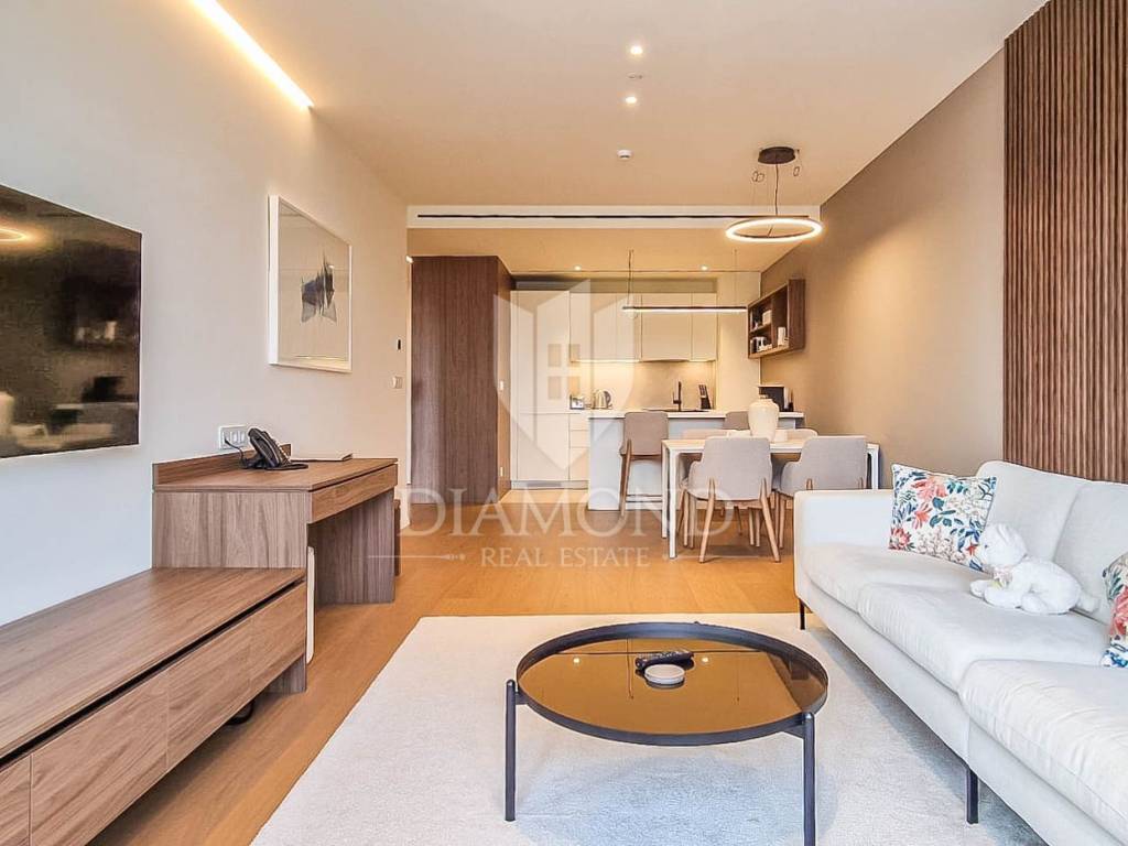 The interior is designed in a modern open space concept that connects the kitchen, dining room and living room into an airy and bright unit with access to the balcony. The apartment has one spacious bedroom and a modern bathroom, and is equipped with quality and carefully selected furniture and modern equipment that meets the high standards of luxury accommodation.