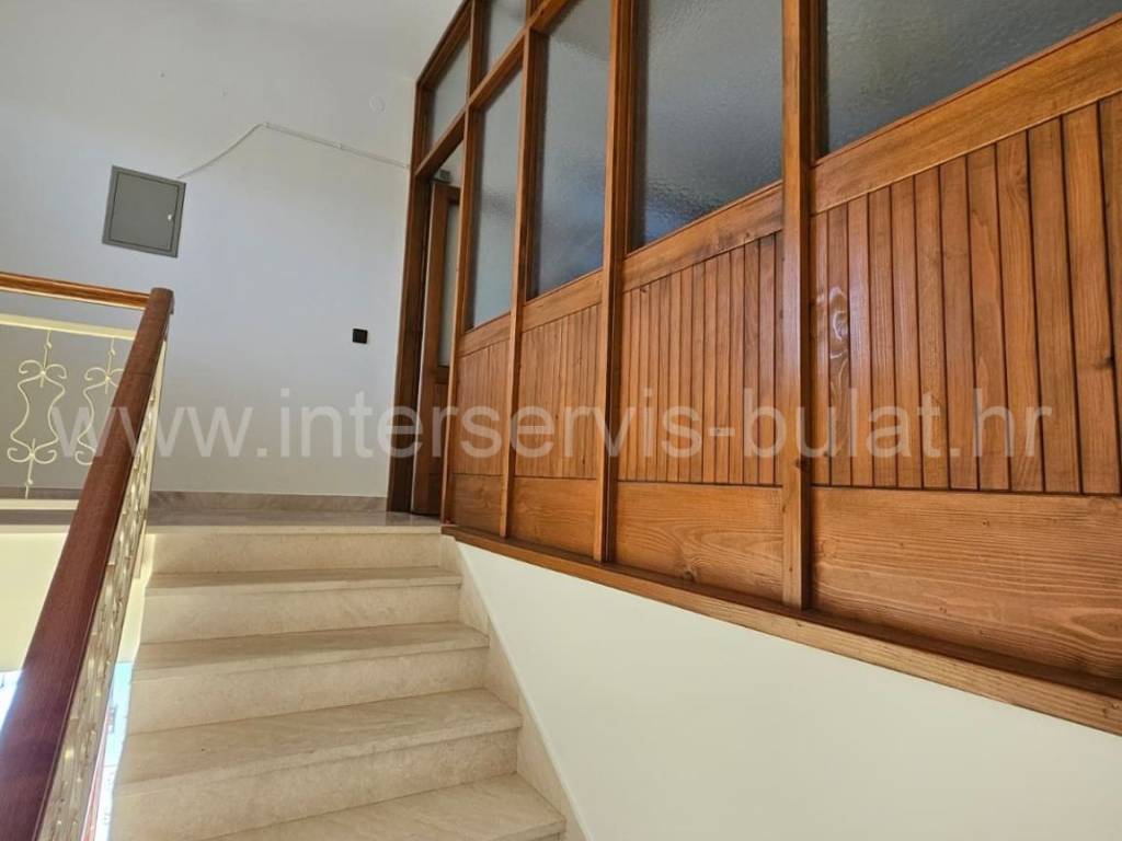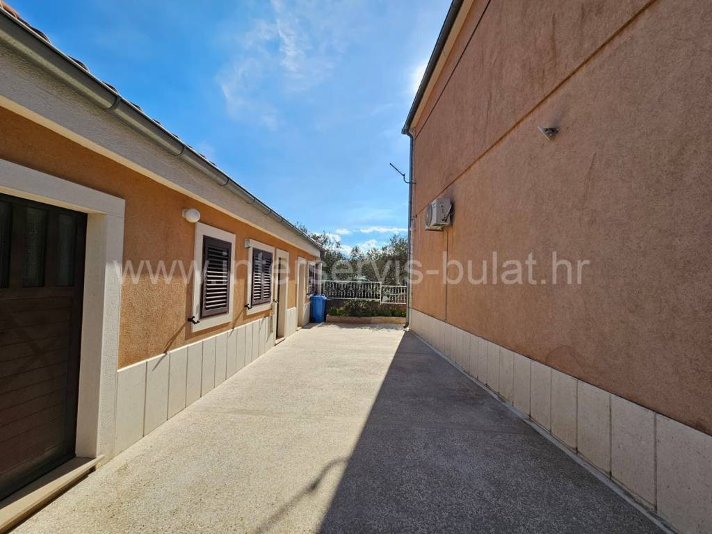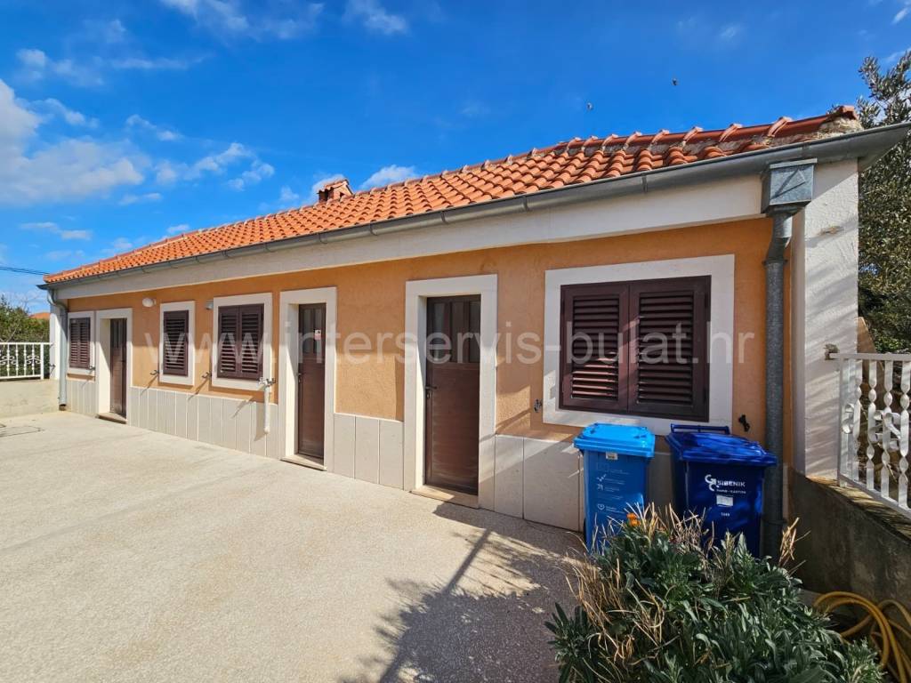 .::: Zablaće house close to the sea :::. In the center of the quiet town of Zablaće near Šibenik, very close to the sea, there is a detached two-story house with two apartments, situated on a plot of 400 sqm. The house offers 205 sqm of living space. On the ground floor there is a comfortable two-bedroom apartment of 90 sqm and a garage of 13 sqm. An internal staircase leads to the 1st floor, where there is a spacious two-bedroom apartment of 105 sqm with access to a terrace of 19 sqm. The terrace offers a beautiful view of the sea, which is only 120 m away. The house is decorated and maintained. All rooms are equipped with air conditioning. In the fenced yard there is parking space, a garden and an auxiliary building of 37 sqm. The auxiliary building is multifunctional and consists of: a summer kitchen of 17 sqm, a laundry room of 9 sqm and a storage room of 11 sqm. The location is very attractive, and the beach is only 250 m away. Tour of the property is available by prior arrangement and appointment booking (two days in advance). Please specify ID number of the property when contacting us. Looking forward to your call.
