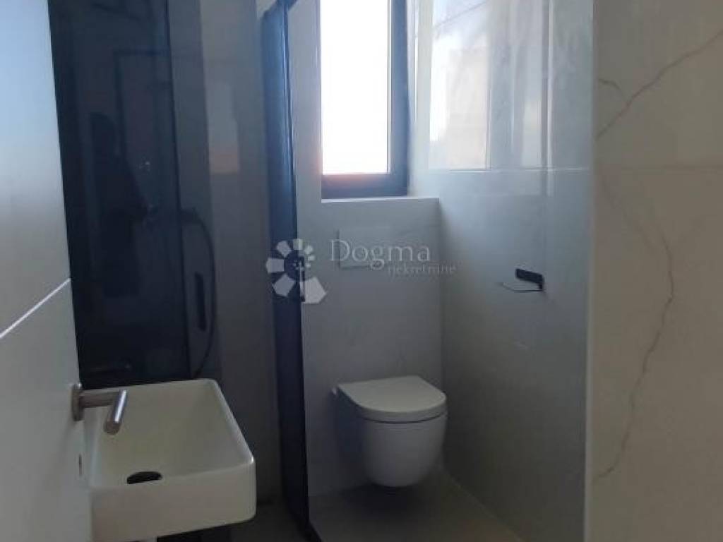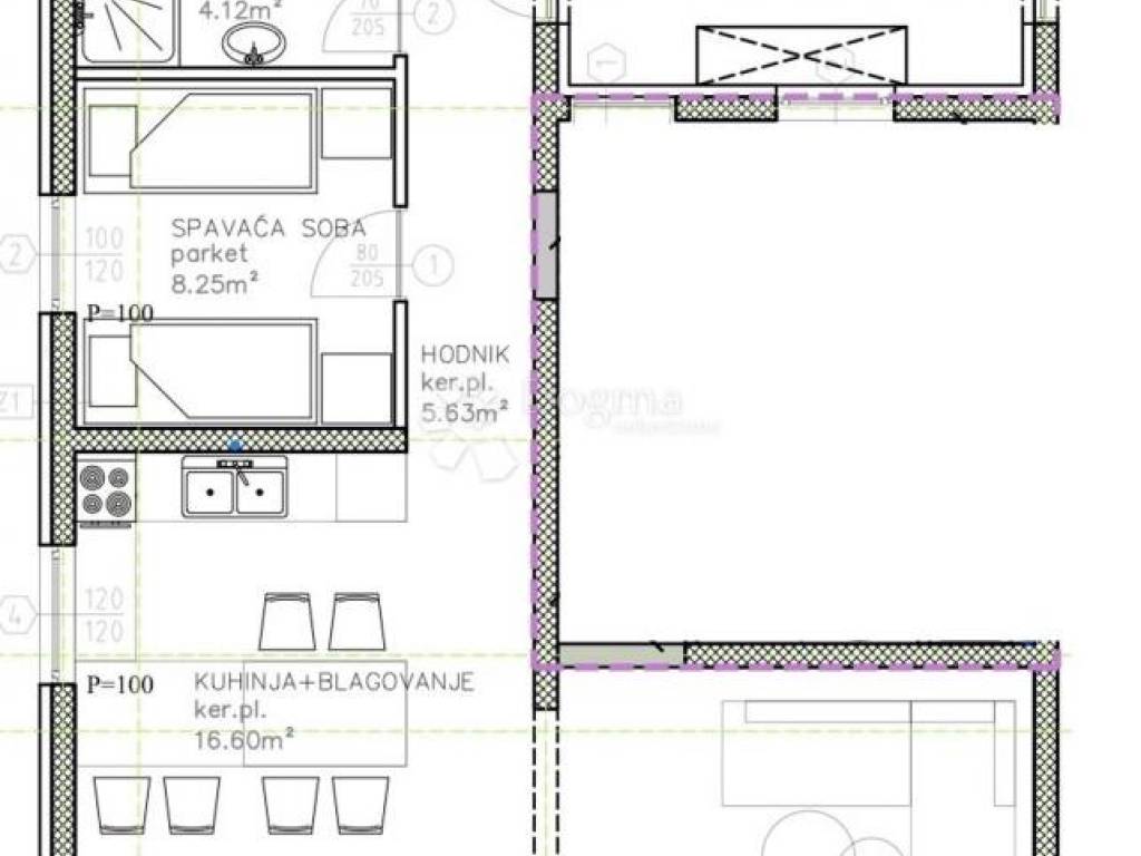 For sale is an apartment in Povljana on the spectacular island of Pag. Upon entering the apartment, you arrive in a hallway to the right is a bedroom, straight ahead is the bathroom, and to the left of the bathroom is another bedroom. Leaving the hallway, you enter a room that combines the kitchen and dining area and also has access to a terrace with a gross area of 8.45 m. Right next to the kitchen and dining area, in a separate room, is the living room which also has its own terrace of 8.73 m. Both terraces offer a sea view, and since the building faces southwest and is located in a bay just 50 meters from the sea, the apartment also boasts magnificent sunset views.