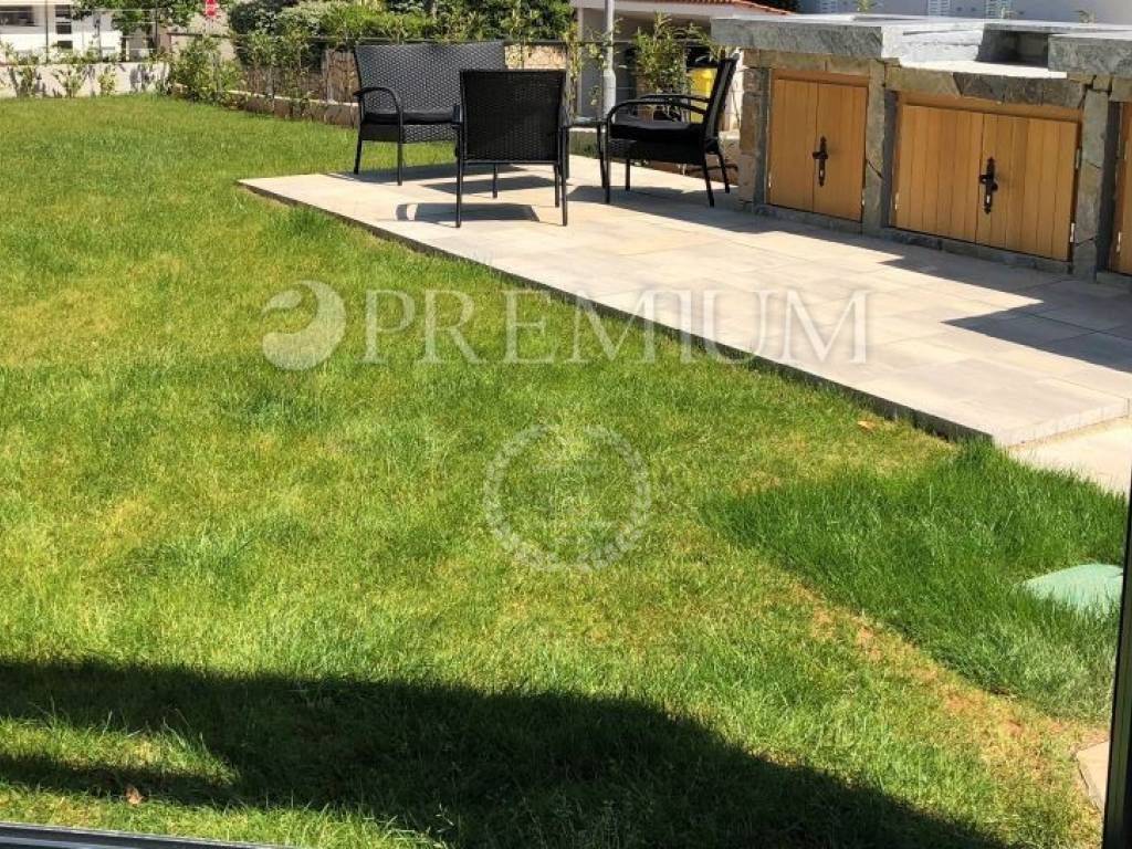 The property also includes a landscaped garden of 164 m², featuring a summer kitchen ideal for outdoor living and social gatherings, as well as two private parking spaces, which is a significant advantage at this location in Malinska.