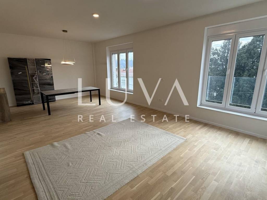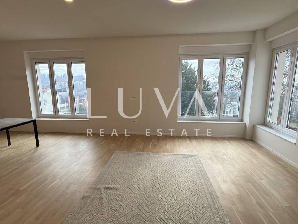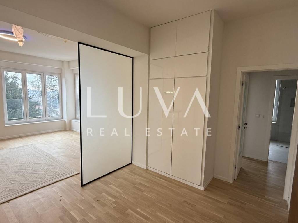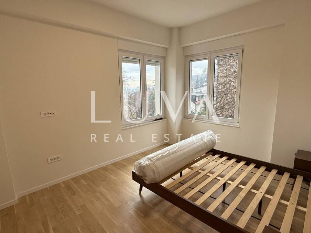 An unfurnished four-room apartment with a total area of 120 m² is for sale, located on the second floor of a smaller residential building with a total of two apartments, in a quiet cul-de-sac in Mallinova Street. The apartment was completely renovated in 2025, during which all installations, floors, ceilings, walls, and external PVC joinery were replaced, making it practically a new apartment in an existing building.