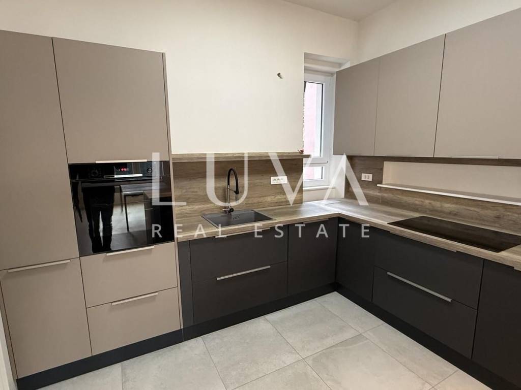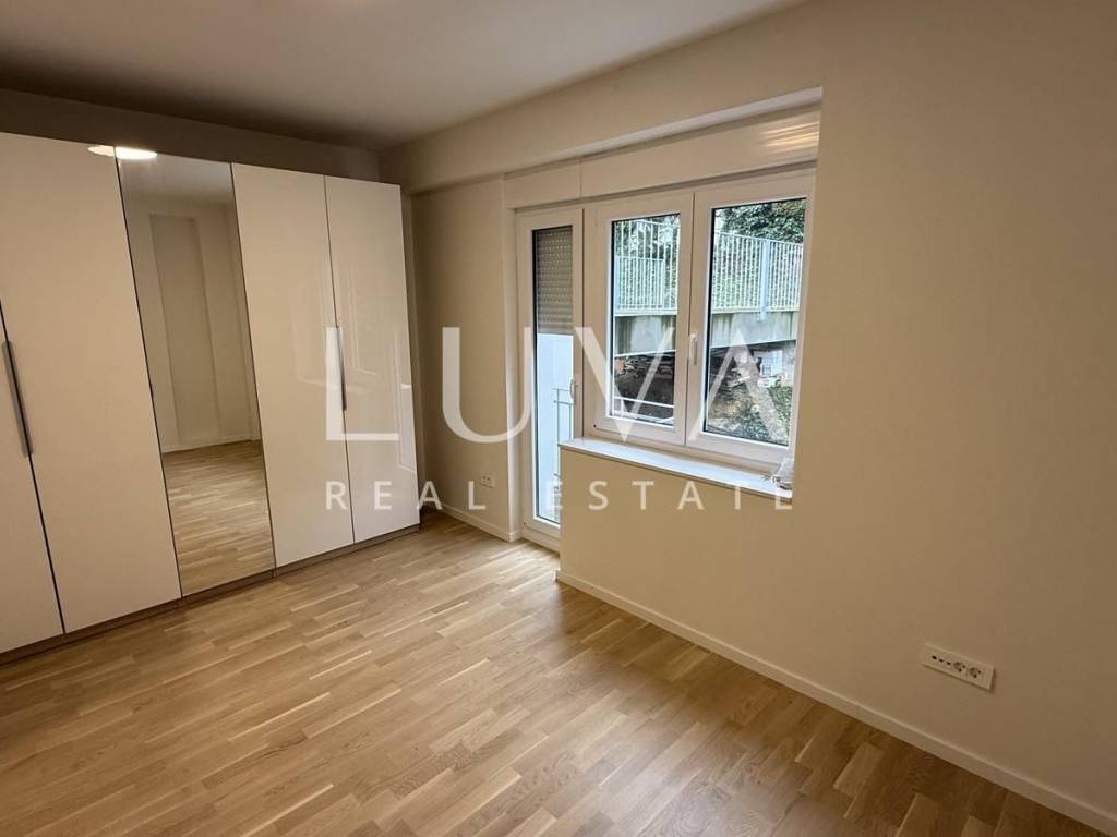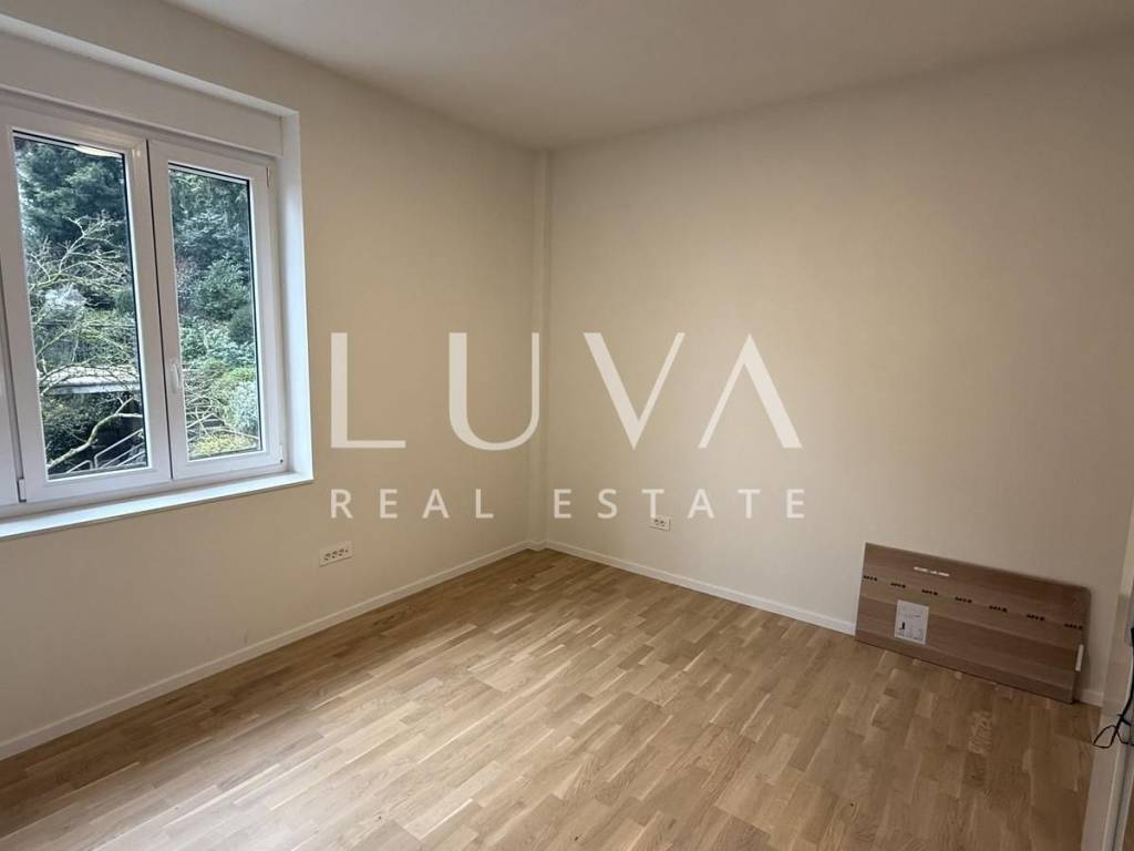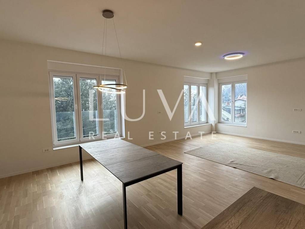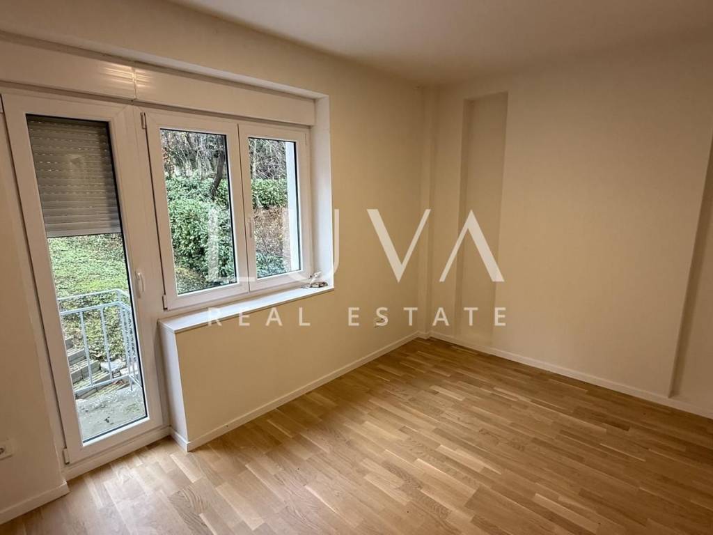 An unfurnished four-room apartment with a total area of 120 m² is for sale, located on the second floor of a smaller residential building with a total of two apartments, in a quiet cul-de-sac in Mallinova Street. The apartment was completely renovated in 2025, during which all installations, floors, ceilings, walls, and external PVC joinery were replaced, making it practically a new apartment in an existing building.