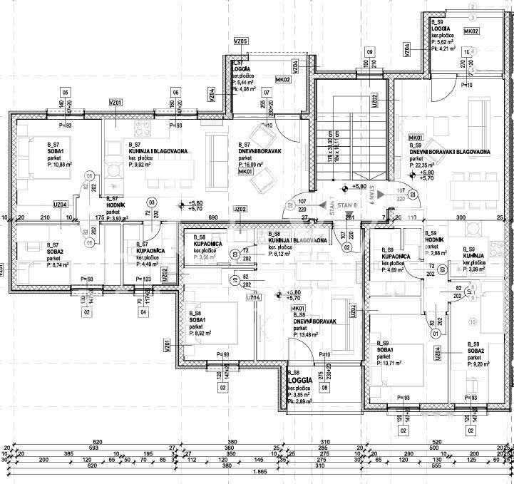 The residential area includes a spacious living room connected to the kitchen with a total surface of 29.74 m², creating an ideal environment for socializing and relaxation. There are also two comfortable bedrooms – a master bedroom of 11.26 m² and an additional bedroom of 7.5 m², providing pleasant living and privacy. The elegant 4.4 m² bathroom is equipped with modern features, while the 5 m² loggia offers a lovely outdoor space with a beautiful sea view.