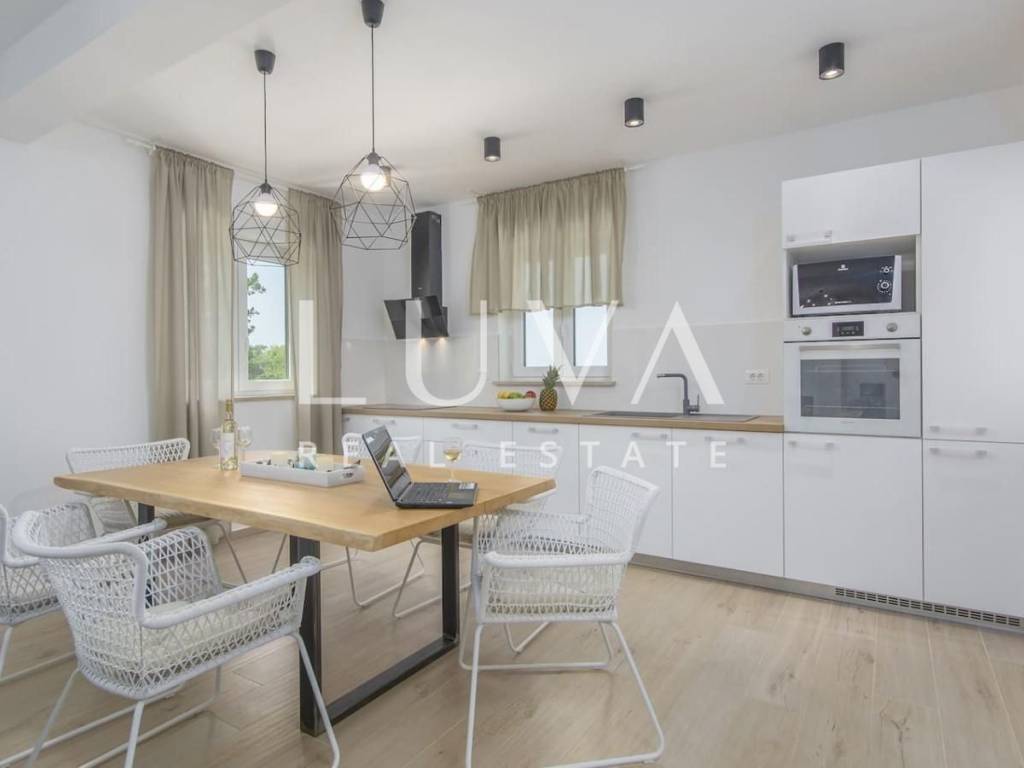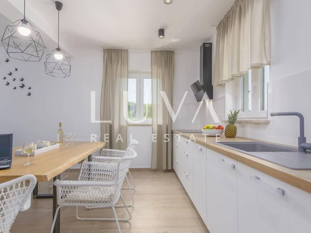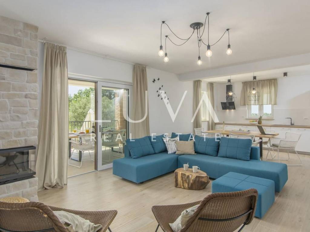 Located near the picturesque town of Vrsar, surrounded by unspoiled nature and open meadows, this elegant house with a private pool is available for long-term rental. A true oasis of peace and privacy, this property is a perfect choice for those seeking comfort, style, and proximity to the sea, while escaping the hustle and bustle of everyday life.