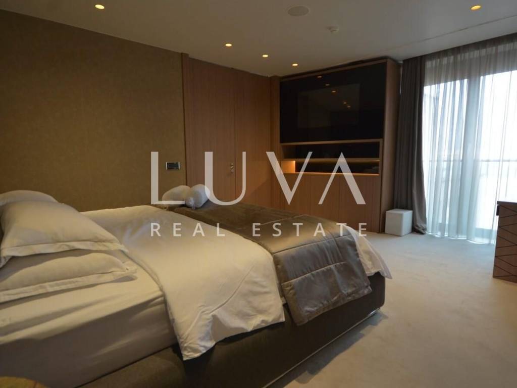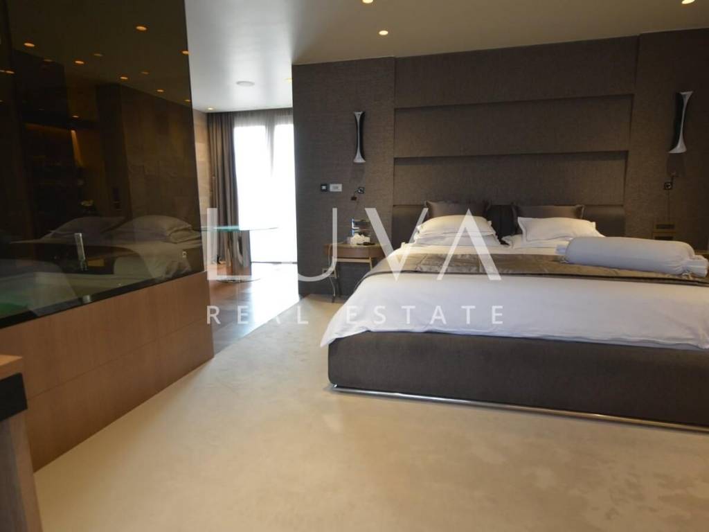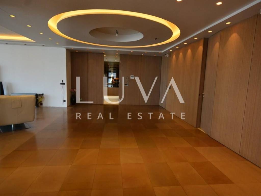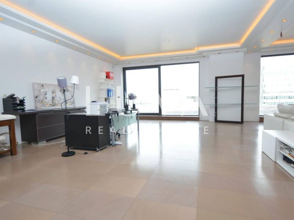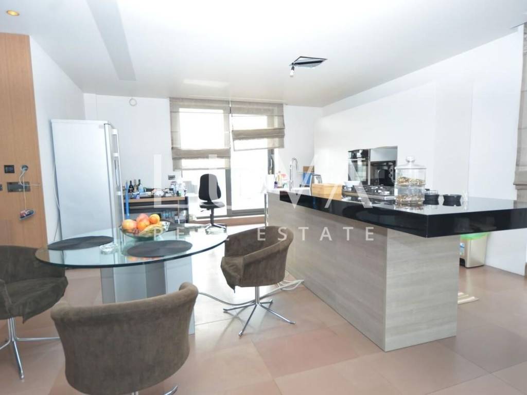 A luxurious, modern, spacious penthouse in a new reinforced concrete building is for sale. Located on the 5th floor, the building has 2 elevators connected to the garage. The apartment has a net area of 276.49 m², a terrace area of 213.20 m², and 55.02 m² for 3 garages, totaling 544.71 m² gross, or 367.96 m² net according to calculation coefficients.