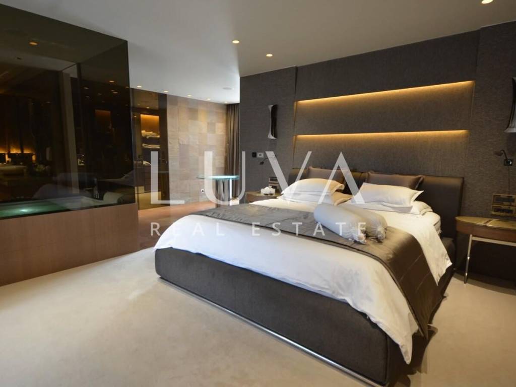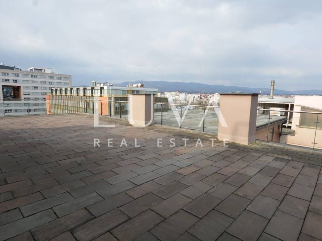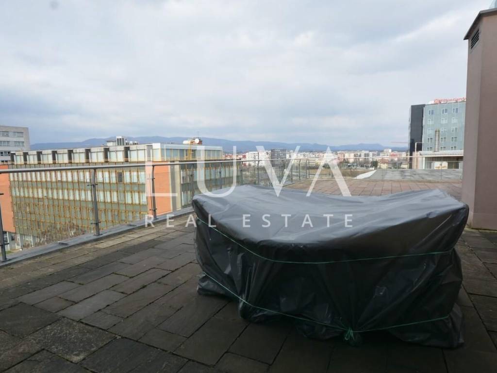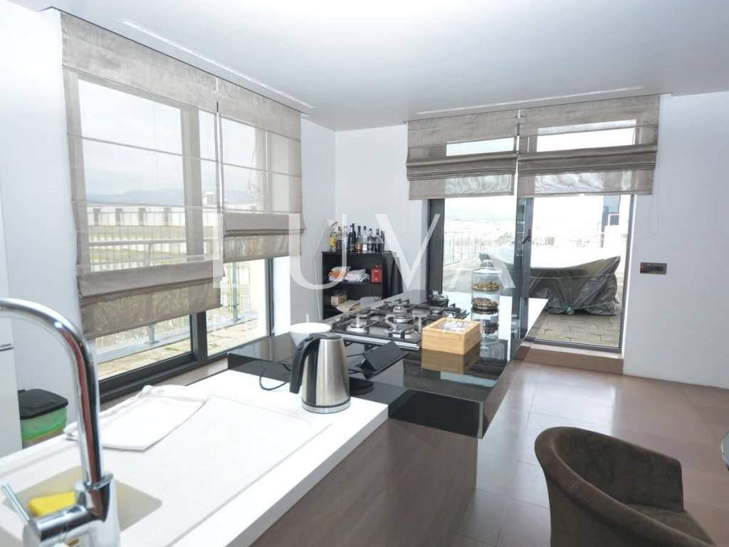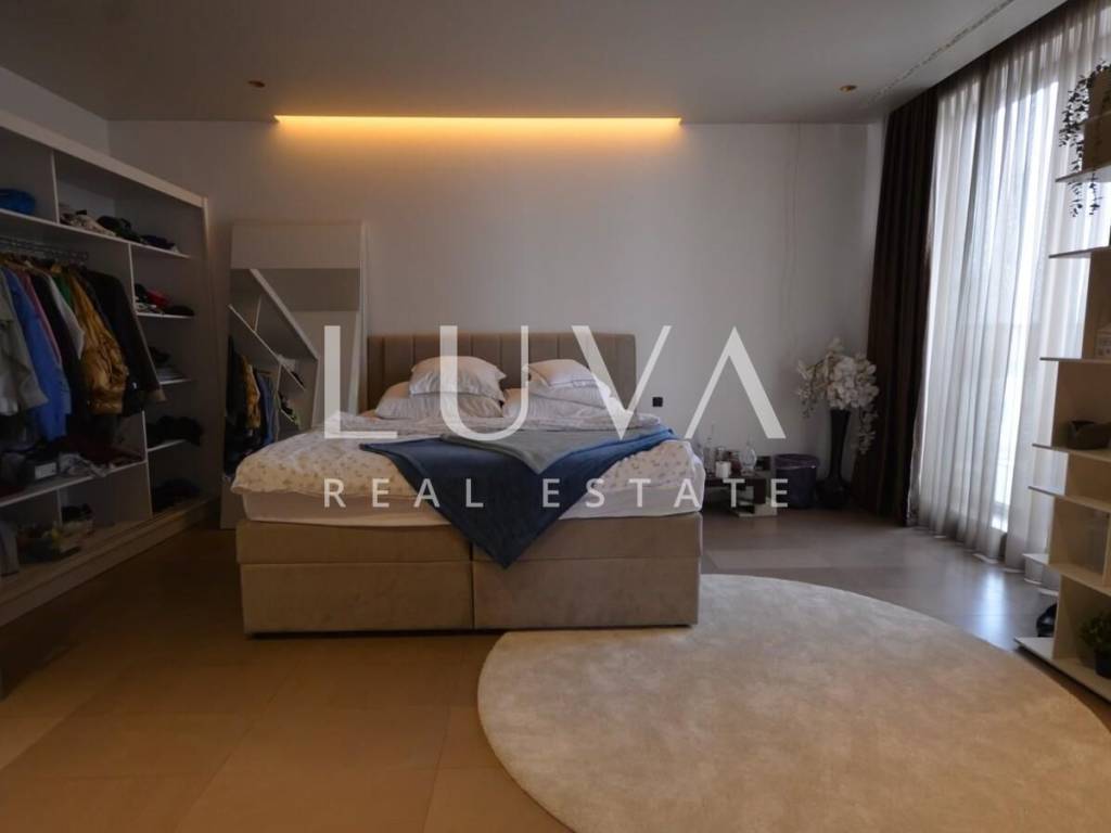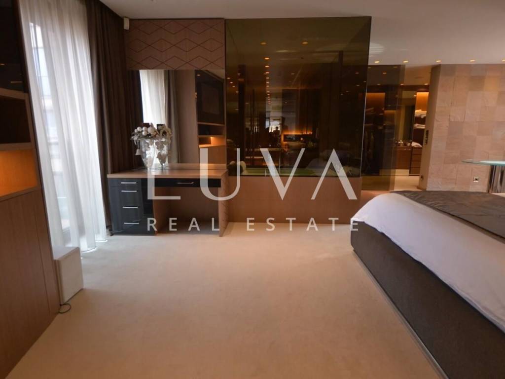 A luxurious, modern, spacious penthouse in a new reinforced concrete building is for sale. Located on the 5th floor, the building has 2 elevators connected to the garage. The apartment has a net area of 276.49 m², a terrace area of 213.20 m², and 55.02 m² for 3 garages, totaling 544.71 m² gross, or 367.96 m² net according to calculation coefficients.