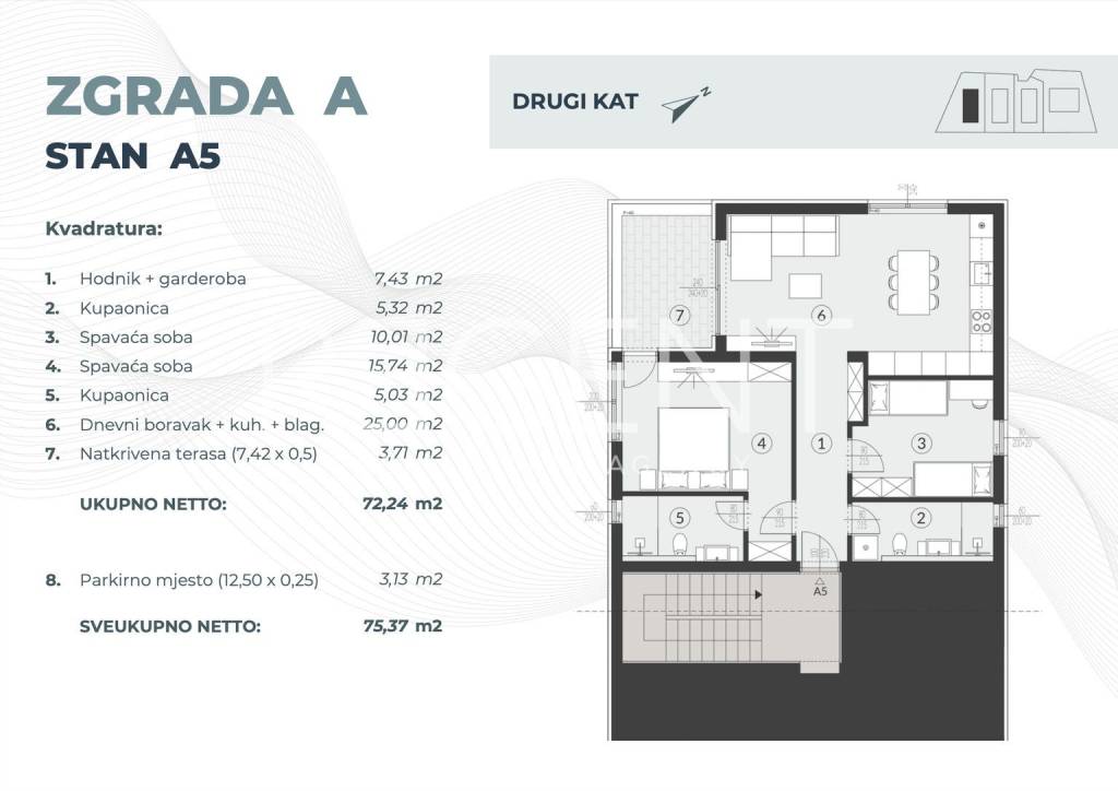 Квартира на первом этаже, расположенная в отличном месте в Фажане, находится в качественном новостройке и идеально подходит для семей, пар или инвесторов, ищущих недвижимость, подходящую для туристической аренды или долгосрочного безопасного инвестирования. Квартира имеет общую чистую площадь 47,28 м², в то время как общая расчетная площадь с принадлежностями составляет 55,08 м². Она состоит из прихожей с гардеробом площадью 5,04 м², ванной комнаты 5,06 м², просторной спальни 13,76 м² и гостиной с кухней и столовой общей площадью 23,42 м², спроектированной в открытой и функциональной планировке, которая обеспечивает максимальное использование пространства и обилие естественного света. Квартире также принадлежит сад расчетной площадью 5,41 м² (фактическая площадь 54,08 м²), который обеспечивает дополнительную приватность и возможность обустройства в соответствии с вашими пожеланиями, а также парковочное место расчетной площадью 3,13 м² (12,50 м² фактической площади), что представляет собой значительное преимущество в течение всего года, особенно в туристический сезон. Новостройка обеспечивает современные стандарты строительства, энергоэффективность и долгосрочную стоимость недвижимости. Фажана - одно из самых востребованных мест на западном побережье Истрии, известное своими благоустроенными пляжами, кристально чистым морем и непосредственной близостью к Национальному парку Бриюни. Помимо аутентичной средиземноморской атмосферы, место предлагает все необходимые удобства для качественной жизни - магазины, рестораны, набережные, велосипедные дорожки и отличную транспортную связь с Пулой и остальной частью Истрии. Именно благодаря сочетанию спокойного расположения и высокого туристического спроса, недвижимость в Фажане представляет собой безопасную и долгосрочную выгодную инвестицию. Проект начинается со строительства в конце года, с возможностью поэтапной оплаты и гибкими условиями. Для получения дополнительной информации и договоренности о осмотре, мы в вашем распоряжении.