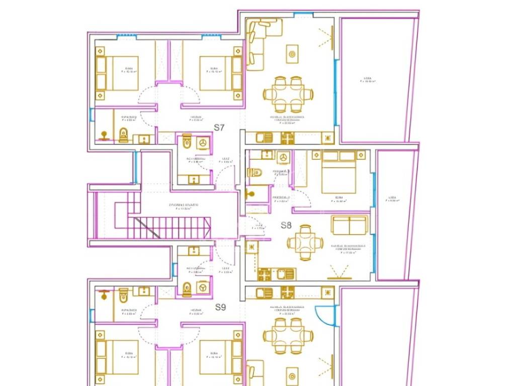 STAN S7 NA 2. KATU, DVOSOBAN, sadrži: ulaz (pov. 3.20 m2), hodnik (pov. 6.00 m2), dnevni boravak s blagovaonicom i kuhinjom (pov. 25.50 m2), dvije spavaće sobe (pov. 10.10 m2 i 10.10 m2), kupaonicu (pov. 4.80 m2), WC s vešerajem (pov. 3.50 m2) i loggia-u (pov. 19.50 m2). Ukupno: 77.83 m2.