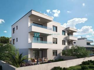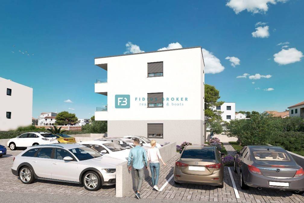 The new modern project of a modern residential building with 6 residential units is located in a quiet location, in an already built part of Brodarica, surrounded by family houses, very close to all important facilities, of which we highlight the proximity of an elementary school, kindergarten, beach.. It will consist of three floors: ground floor + 1st floor + 2nd floor. Quality materials according to the latest building standards will be used in the construction. Among the equipment we highlight: 10 cm polystyrene facade, security doors, glass railings on the terraces, electric underfloor heating in the living room and bathrooms, modern bathroom fixtures, high-quality laminate flooring in the bedrooms, TV/SAT connection in the living room and bedrooms, high-quality ceramic tiles, PVC joinery, electric roller shutters with mosquito nets, inverter air conditioning in the living room and bedrooms. The building will have a connection to the city sewer and an asphalted access road. The apartments on the ground floor have a corresponding part of the garden. Each apartment has two parking spaces. Construction will begin in December 2025, and the planned completion of construction and move-in is at the end of 2026.