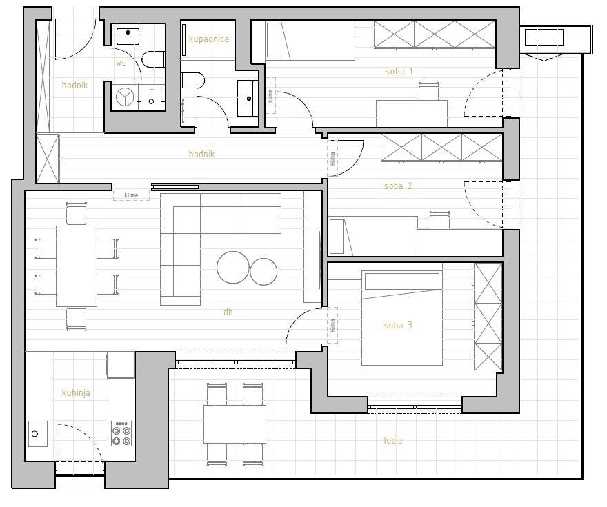 Available apartments (1.4, 2.0, 2.2, and 2.4) are all designed as spacious 3-bedroom units (3S+DB). Each residence features a large loggia, ideal for outdoor living, protected by modern sliding shutters. The building’s robust reinforced concrete structure ensures maximum safety and longevity.