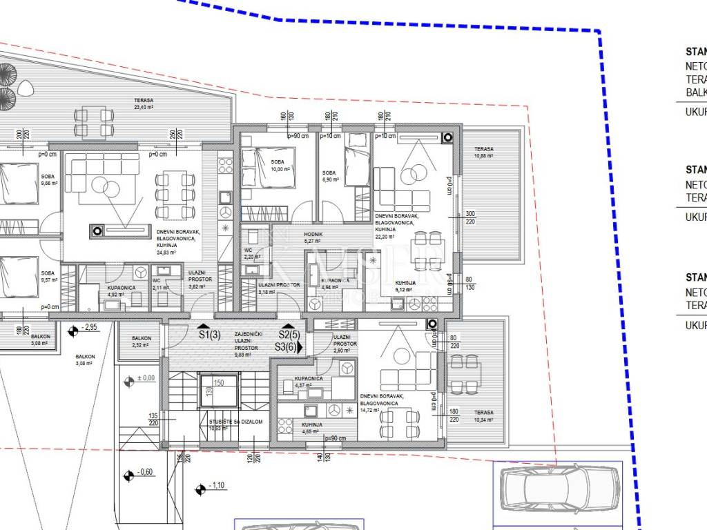 The net internal area is 59.81 m². On the 1st and 2nd floor list, the apartment is paired with S5 and a terrace and total net area are listed for it (59.81 + terrace = 83.21 m² total net).