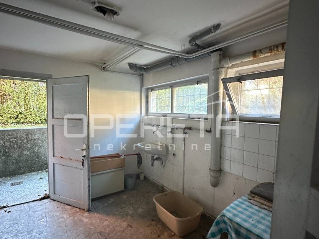 DVOJNA KUĆA U CENTRU VARAŽDINA ZA ADAPTACIJU. ODLIČNA LOKACIJA. Vrhunski osmišljena i sagrađena kuća u solidnom stanju. U centru grada sa velikom zelenom zonom, garažom i poslovnim prostorom s posebnim ulazom s ulične strane. Open space koncept dnevnog boravka s otvorenim kaminom s izlaskom na terasu. Potpuno ista kuća spojena je na ovu i postoji mogućnost kupnje obje kuće. Potrebna je adaptacija.