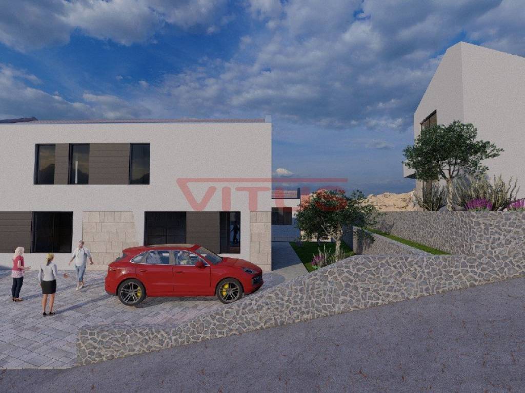 Otok Krk, Malinska! Na prodaju je građevinsko zemljište površine 1520 m2 sa pogledom na more na neponovljivoj lokaciji, u strogom centru Malinske! Trenutno je u postupku ishodovanje građevinskih dozvola za tri dvojne kuće (obiteljske kuće sa dvije stambene jedinice), katnosti prizemlje+kat sa okućnicom i parkirnim mjestima. Iznimno tražena lokacija, 100 m od mora i svih potrebnih sadržaja. Rijetkost na tržištu!