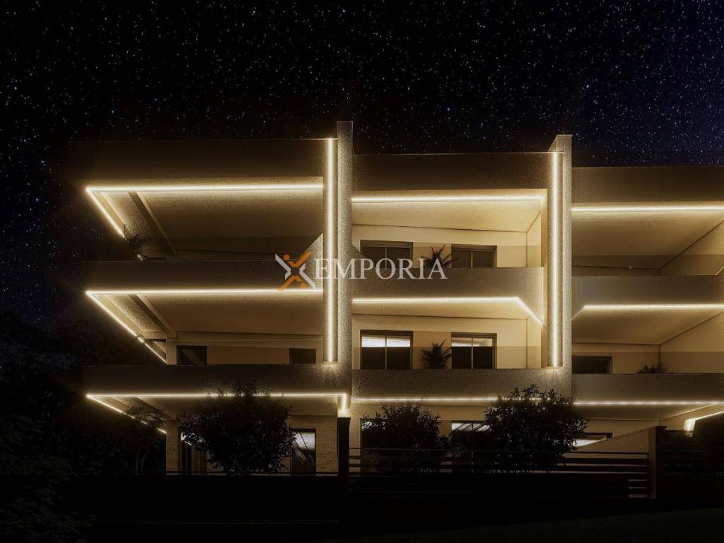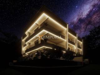 The apartment features electric underfloor heating throughout and 3 air conditioning units in the living room and bedrooms. The building has concrete wall construction, and the facade has 10 cm Styrofoam insulation. Aluminium joinery with electric shutters and mosquito nets is installed. Floors are finished with tiles. The entrance door is burglar-proof and fire-resistant. The roof is new, flat and concrete.