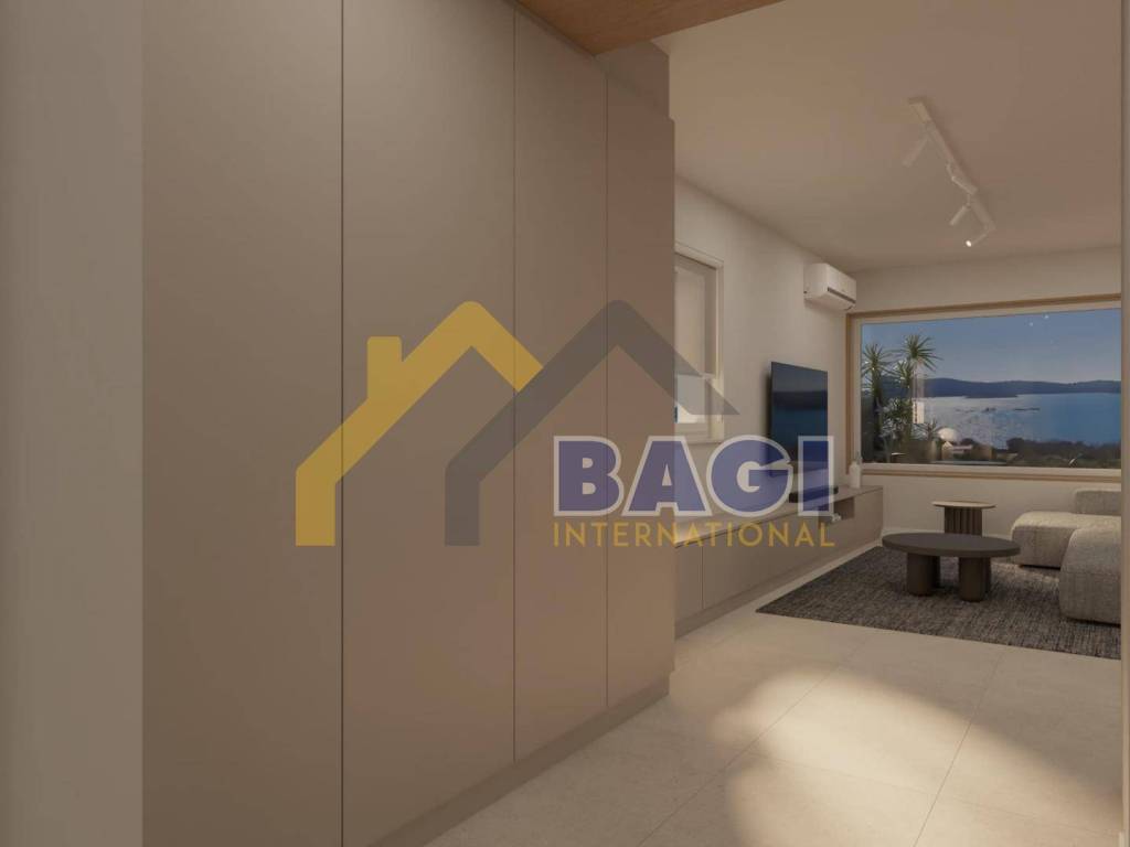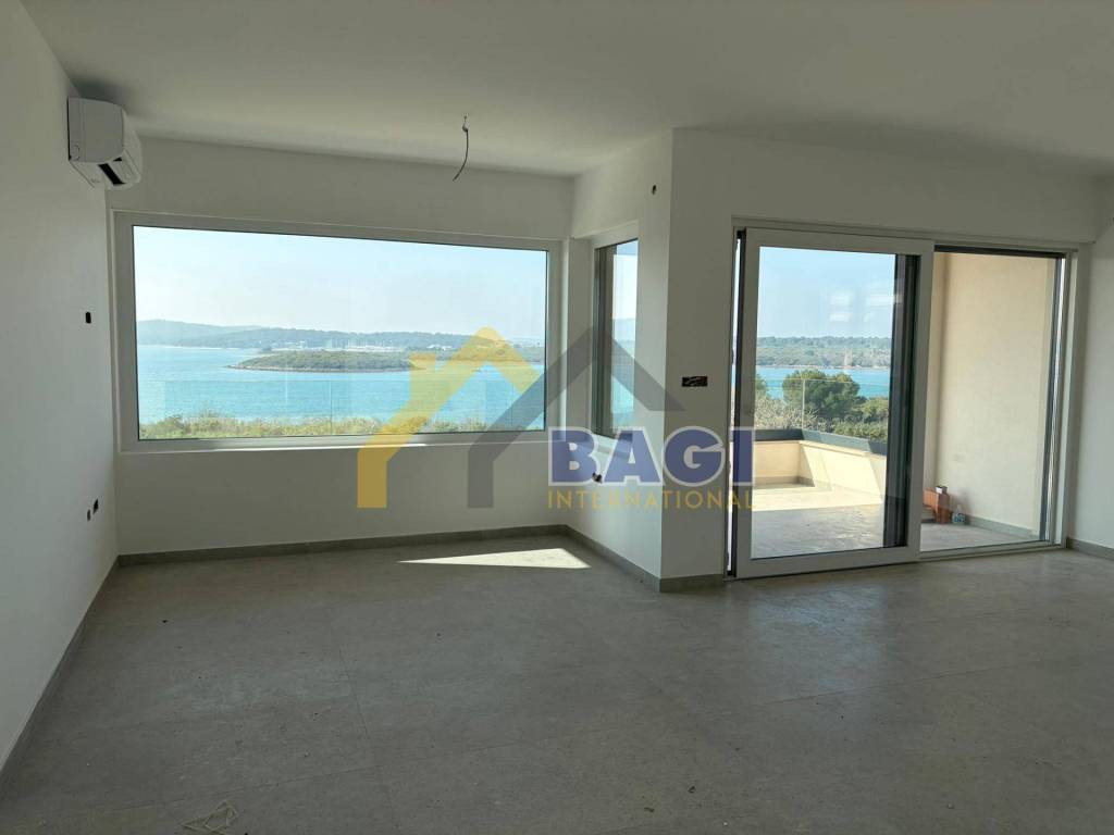 A modern apartment with a stunning panoramic view is offered for sale, located on the first floor of a high-quality new development in Medulin, in the attractive Mukalba area. The property is positioned in the first construction row, with a green zone in front of the building where no construction is allowed, ensuring a permanently open view and additional privacy for future owners. The residential building consists of only three units, guaranteeing a quiet and intimate environment, ideal for comfortable family living or a luxurious seaside retreat.