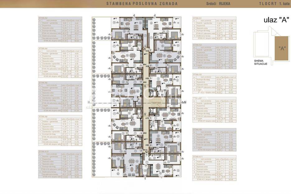 Moderan i pažljivo planiran stambeno poslovni projekt u Srdočima, osmišljen da zadovolji potrebe suvremenog života.Stan A 28 na trećem katu od 69,27 m2 sastoji se od hodnika, dvije spavaće sobe, kuhinje s blagavaonom, dnevnog boravka, kupaonice i loggie.Garaža i spremište se kupuju zasebno.U sklopu projekta gradi se višestambeni kompleks s ukupno 104 stana, garažama, spremištima i sedam poslovnih prostora. Objekt će imati tri podzemne etaže namijenjene parkiranju i spremištima, dok se iznad njih planiraju dvije zgrade s prizemljem i pet katova. U prizemlju će biti smješteni poslovni prostori, a između dvaju objekata formira se ugodan pješački trg koji će dodatno oplemeniti okolinu.Od prvog do petog kata predviđeni su stanovi raznih veličina, ukupno 104 jedinice, raspoređene u dvije zgrade.Lokacija u samom centru Srdoča posebno je cijenjena zbog svoje funkcionalnosti i razvijene infrastrukture. U neposrednoj blizini nalaze se škole, vrtići, sportski sadržaji, trgovine, ugostiteljski objekti, rekreacijski tereni, kao i odlična povezanost gradskim prijevozom. Zahvaljujući blizini Opatije, lokacija dobiva dodatnu atraktivnost i vrijednost.Ponuda stanova prilagođena je različitim potrebama i stilovima života — od praktičnih manjih stanova za pojedince i parove do prostranijih obiteljskih domova, a sastoje se od jednosobnih, dvosobnih i trosobnik stanova sa dnevnim boravkom različitih veličina.Visok standard gradnje i opreme osigurava dugotrajnu kvalitetu i udobnost. Stanovi su opremljeni električnim podnim grijanjem u dnevnim boravcima i kupaonicama, inverterskim klima uređajima, keramikom prvoklasne kvalitete, laminatom u spavaćim sobama, protukliznim pločicama na terasama i balkonima, sigurnosnim ulaznim vratima, višekomornom PVC stolarijom s troslojnim staklom, ALU roletama, kvalitetnom kupaonskom opremom renomiranih proizvođača te modernim walk-in tuševima i ugradbenim vodokotlićima.Za detaljnije informacije slobodno se javite.... Više na eurovilla.hr, ID: 115158