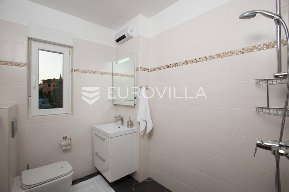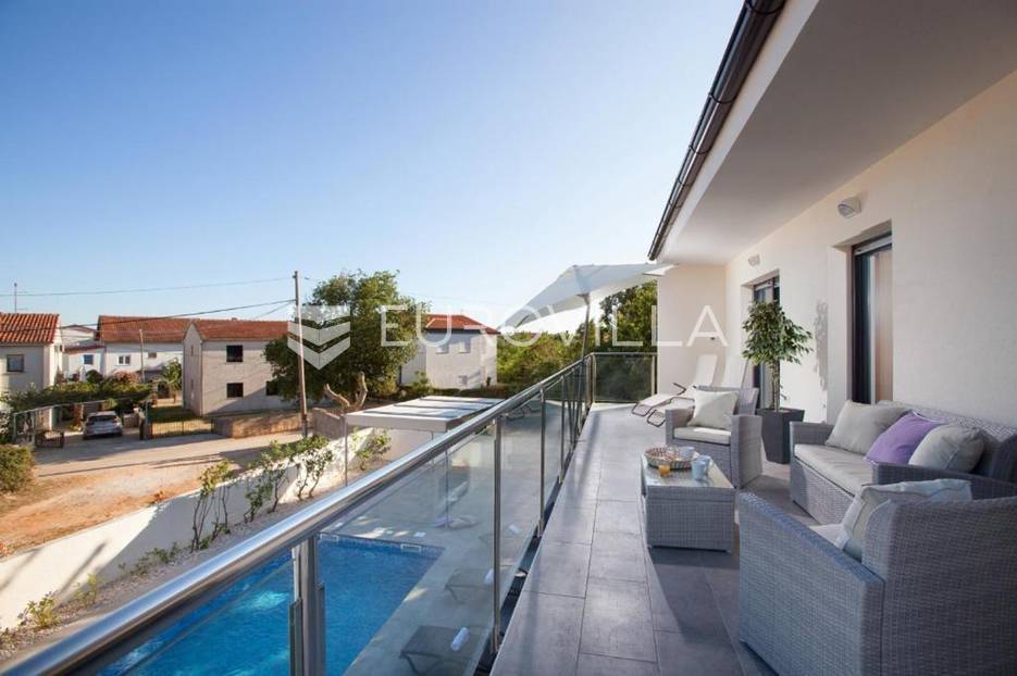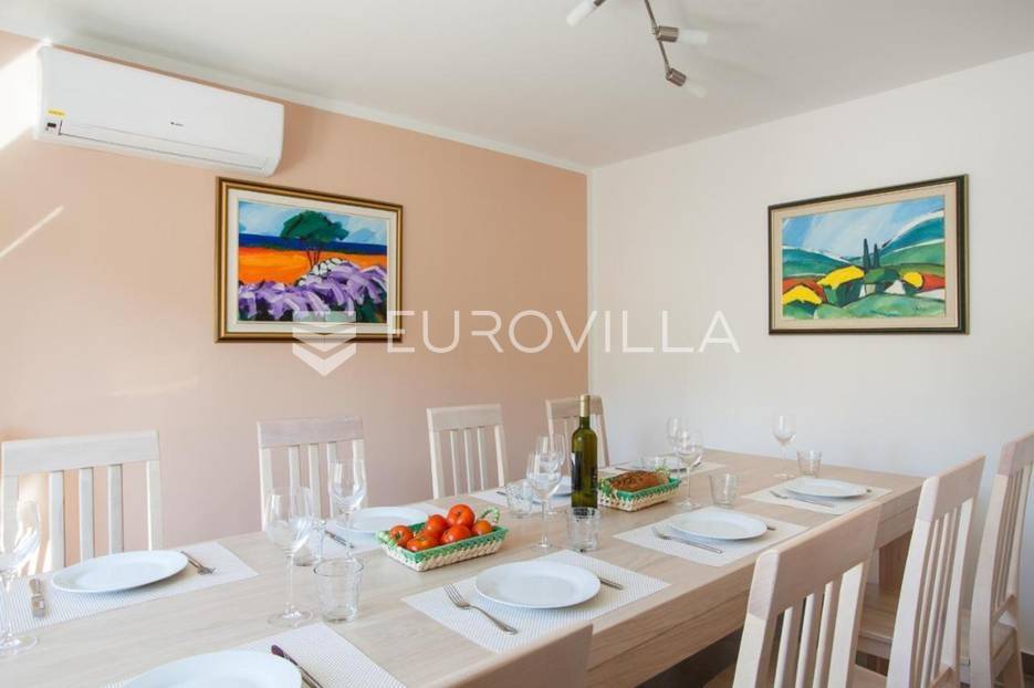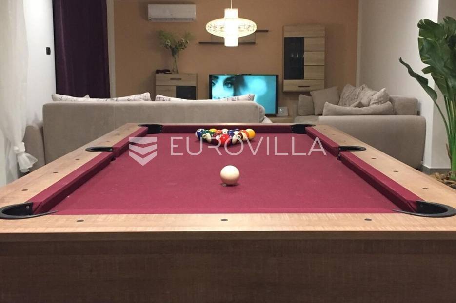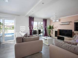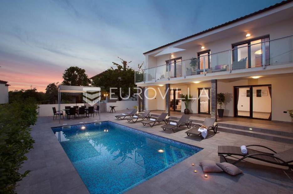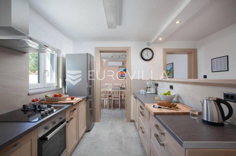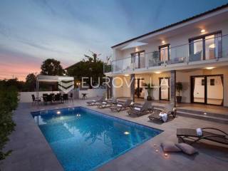 U Medulinu, uvijek traženoj destinaciji bilo za život ili bavljenje turizmom u ponudi je ova lijepa, funkcionalna, moderna kuća koja se proteže na dvije etaže 190 m2.Na uređenoj okućnici od 520 m2 u prizemlju kuće nalazi se veliki, svijetli dnevni boravak s izlazom na vanjski bazen i sunčalište, veliki biljarski stol za razonodu u ugodnom klimatiziranom prostoru, kuhinja u potpunosti opremljena, gostinjski WC. Unutrašnjim stubištem penje se na kat gdje se nalaze četiri velike spavaće sobe, svaka ima klima uređaj, laminat na podu, izlaz na vanjsku ostakljenu terasu s pogledom na bazen, tri opremljene kupaone lijepom talijanskom keramikom.Udaljenost od mora je 1200 m, do trgovina 600 m.Kuća se uspješno iznajmljuje tijekom ljetnih mjeseci.Za dodatne informacije stojimo Vam na raspolaganju.... Više na eurovilla.hr, ID: 122050