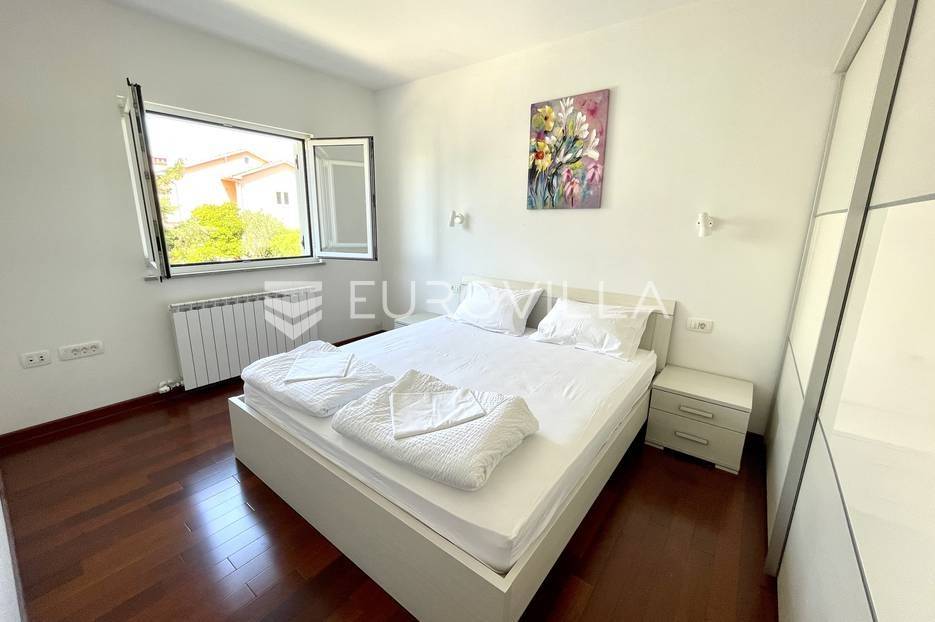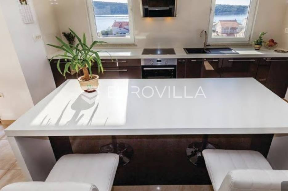 Na jednom od najsunčanijih i najljepših otoka na Jadranu, otoku Rabu prodaje se stan na 2.katu apartmanske ville veličine 105 m2.Ovaj lijepo i moderno uređen stan sastoji se od ulaznog prostora, dvije spavaće sobe svaka sa svojom kupaonicom, open space kuhinje, blagovaonice i dnevnog boravka. Blagovaonica i dnevni boravak imaju izlaz svaki na svoju loggiu s predivnim pogledom na more.Stan je smješten na izvrsnoj lokaciji 250 m od mora, malo izvan centra grada tako da ima privatnost i mir potreban za ugodan odmor. Pokraj kuće nalazi se parkirno mjesto.Ostale informacije na upit.... Više na eurovilla.hr, ID: 137989