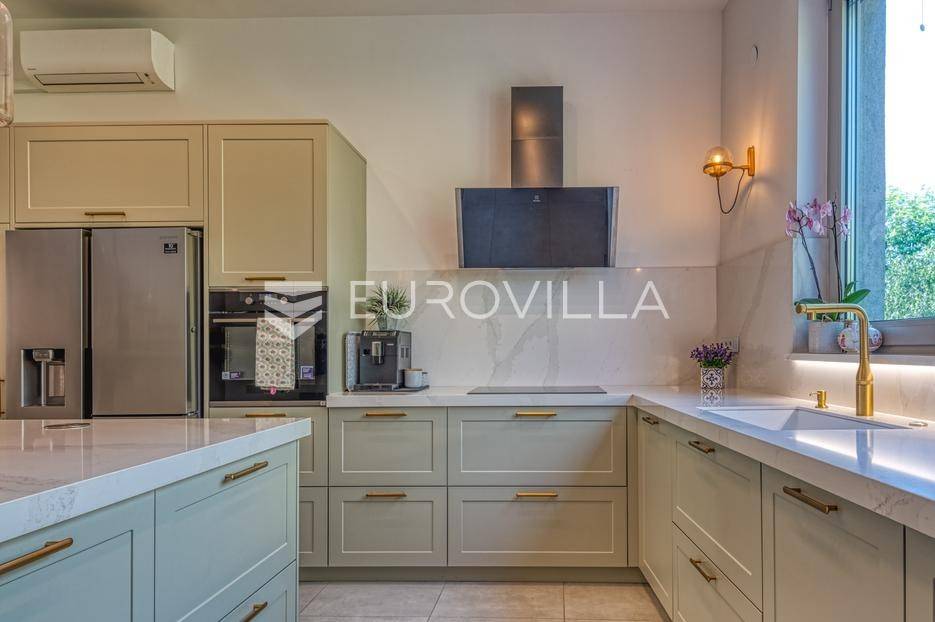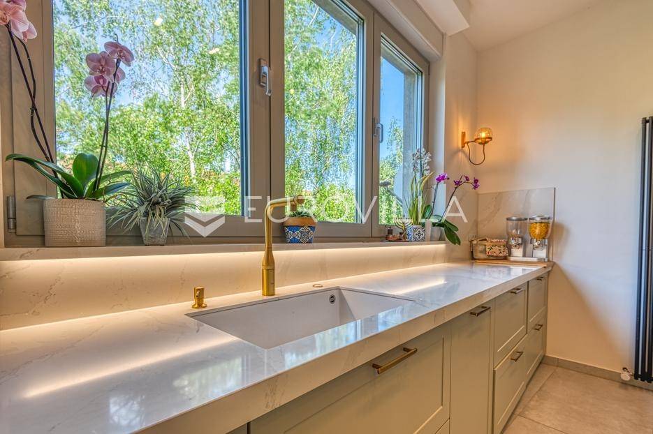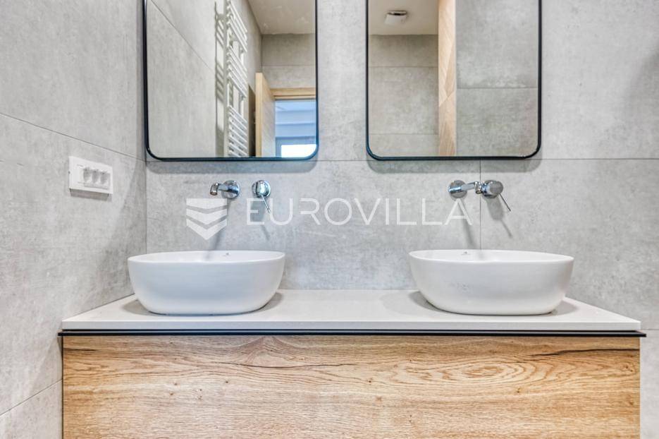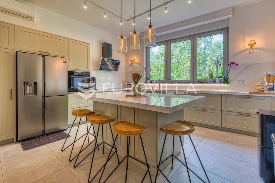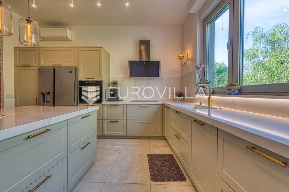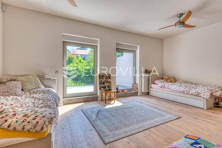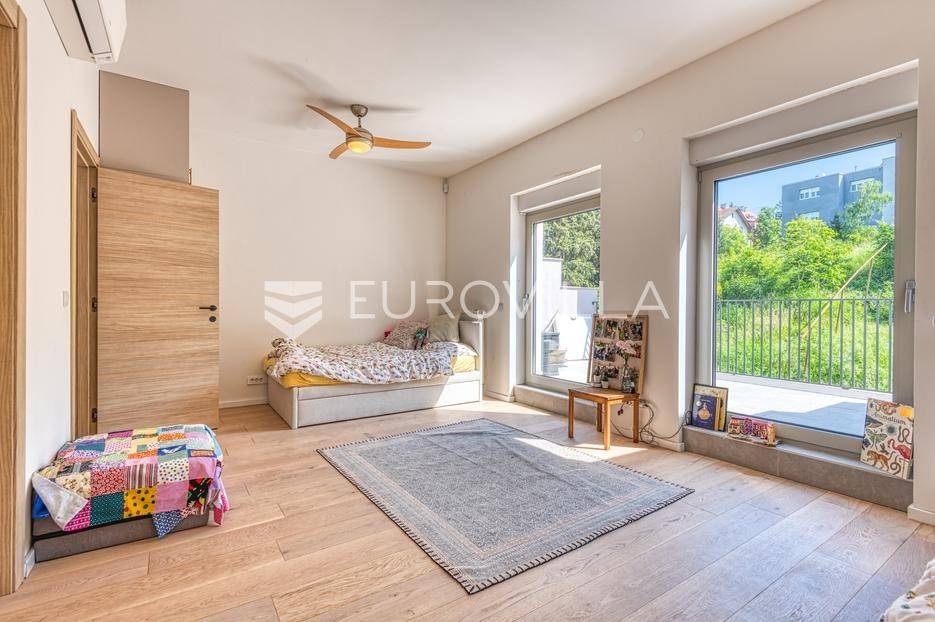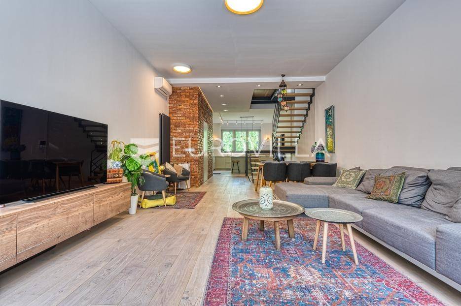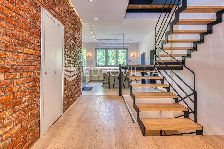 Medveščak, luksuzno uređen četverosoban stan s vrtom i zasebnim ulazom zatvorene površine 190,47 m2 na vrhunskoj lokaciji u samom centru grada u neposrednoj blizini svih sadržaja potrebnih za kvalitetan obiteljski život.Stan se prostire na četiri etaže koje su povezane unutarnjim stubištem. Podrum: otvoreni prostor koji je moguće prilagoditi za razne namjene (fitness, vinski podrum, ured…), kupaonica, spremište i vešeraj. Prizemlje: ulazni hodnik, radna soba koje je moguće koristiti kao spavaću. Prvi kat: prostrani dnevni boravak s kuhinjom i blagovaonicom otvorenog tlocrta s izlazom na terasu 19,75 m2 i vrt 47,00 m2 koji se nalaze s mirne dvorišne strane. Drugi kat: hodnik, master soba s kupaonicom i izlazom na terasu 3,75 m2, dvije spavaće sobe s izlazom na terasu 11,42 m2 i kupaonica. Ukupno obračunski netto korisna površina 203,91 m2.Prilikom uređenja i renoviranja korišteni samo najkvalitetniji materijali i oprema visoke klase. Betonska konstrukcija, aluminijska stolarije s troslojnim staklom. Dizajnerski opremljene kupaonice s top brendovima svih sanitarnih elemenata (GROHE), seljački pod A klase, klimatizirane sve prostorije. Etažno plinsko grijanje s ugrađenim visokokvalitetnim radijatorima sa smart home sustavom, kamin, klima uređaji Daikin, sustav za pročišćavanje i omekšavanje vode. Smart sustav za rolete i svijetla s kontrolom preko aplikacije ili Amazon Alexa sustava! Kuhinja je rađena po mjeri kao i svi ugradbeni ormari u sobama, sve u istim neutralnim bojama.Sve ostale informacije na upit.... Više na eurovilla.hr, ID: 140054