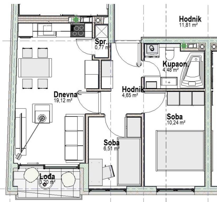 Osijek, Retfala - na prodaju je trosobni stan na 4. katu višestambene zgrade koja počinje sa izgradnjom kraljem ljeta 2026. godine.Stan je dio planirane stambene izgradnje i projektiran je kao trosoban stan s jasno definiranim prostorijama. Nalazi se na 4. katu zgrade te je predviđen za svakodnevno stanovanje manjeg kućanstva ili kao investicija za najam.Ulaz u stan vodi u hodnik površine 4,65 m2, iz kojeg se pristupa svim prostorijama. Dnevni boravak s kuhinjom i blagovaonicom površine 19,12 m2 čini središnji dio stana (uz manji spremišni prostor površine 0,77 m2.), a iz tog prostora omogućen je izlaz na loggiu površine 3,20 m2. Stan raspolaže s dvije sobe, jednom površine 10,24 m2 te drugom površine 6,51 m2, pogodnom za dječju sobu, radnu ili gostinsku namjenu. Kupaonica je površine 4,48 m2 i smještena je uz hodnik, odvojena od dnevnog prostora.Projektom je predviđena standardna sanitarna oprema, keramika i unutarnja stolarija. U određenoj fazi izgradnje moguća je prilagodba završnih materijala i unutarnjih rješenja, ovisno o dogovoru s investitorom.Nekretnina se nalazi u Retfali, u dijelu grada s razvijenom infrastrukturom. U neposrednoj blizini dostupni su škola, vrtić, trgovine, javni prijevoz, dom zdravlja i ostali sadržaji potrebni za svakodnevni život, uz dobru povezanost s ostalim dijelovima grada.Za sva dodatna pitanja i informacije stojimo Vam uvijek na raspolaganju.... Više na eurovilla.hr, ID: 147101