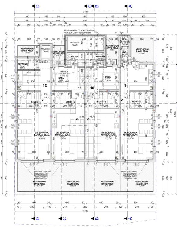 Predstavljamo Vam projekt vrhunske novogradnje u poznatom turističkom odredištu na otoku Pagu, Povljani. Projekt se sastoji od tri moderno dizajnirane zgrade. U početnoj fazi završena je zgrada 1, te je krenula izgradnja zgrade 2. Zgrade se nalaze na samom rubu građevinskog pojasa, te su sa svoje zapadne strane omeđene borovom šumom, što osigurava visoku razinu privatnosti. S druge strane, od poznate plaže Dubrovnik su udaljene svega 250 metara. U istom radijusu možemo pronaći i ostale sadržaje koji su potrebni za kvalitetan život ili odmor.STAN S9 - DRUGI KAT - DVOETAŽNI - 125,83m2Stan S9 nalazi se na 2. katu i potkrovlju zgrade 2 te je ukupne neto korisne površine 125,83m2. Raspoređen je na dvije etaže. Na 1. etaži se nalaze 3 spavaće sobe (14,25m2, 14,20m2 i 8,83m2), dvije potpuno opremljene kupaonice (4,35m2 i 3,77m2), hodnika (3,80m2) te dva natkrivena balkona s kojih se pruža predivan pogled na more (14,40m2 i 9,90m2). Unutarnje stubište (5,80m2) nas vodi na 2. etažu na kojoj se nalazi prostrani otvoreni prostor kuhinje, blagovaonice i dnevnog boravka (37,48m2), WC (2,00m2) te terasa s pogledom na more (14,40m2). Stanu uz to pripada i ostava u podrumu zgrade te jedno vanjsko parkirno mjesto. Također, postoji mogućnost i kupnje garažnog mjesta s automatskim vratima :G1 (20,10m2) 38.190,00€G2 (37,29m2) 69.000,00€G3 (24,60m2) 46.740,00€G4 (44,55m2) 82.500,00€PDV JE UKLJUČEN U CIJENU TE KUPAC NE PLAĆA POREZ NA PROMET NEKRETNINAMA!Očekivano useljenje: 05/2027Od opreme i materijala izdvajamo:Termoizolacija od mineralne (kamene) vune debljine 10 cm i završnim DEMIT slojemPregradni zidovi od pune opekeMulti split invertni sustav klimatizacijePVC low-e dvoslojna stolarija s ugrađenim komarnicima i aluminijskim roletama na električno upravljanjeProtuprovalna i protupožarna vrataLift (luksuzna kabina)Vanjska parkirna mjesta s utičnicomI još mnogo toga..Povljana je mirno priobalno mjesto smješteno na južnom dijelu otoka Paga. Poznata je po dugim pješčanim plažama, čistom moru i opuštenom mediteranskom ugođaju. Idealna je destinacija za obiteljski odmor i život u mirnom okruženju.Za dodatne informacije i dogovor oko razgledavanja nekretnine, slobodno nas kontaktirajte... Više na eurovilla.hr, ID: 159603