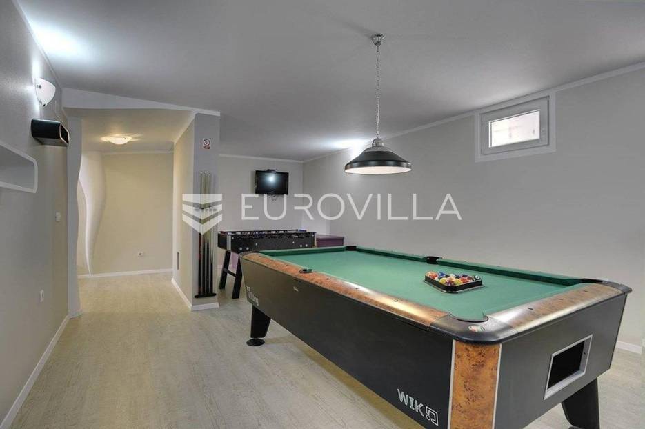 Ova impresivna novogradnja u Medulinu nudi savršen spoj luksuza, udobnosti i funkcionalnosti, čineći je idealnim izborom za obiteljski dom ili visokokvalitetnu investiciju u turistički najam. Smještena na mirnoj lokaciji, a opet u neposrednoj blizini svih bitnih sadržaja, villa se prostire na tri etaže ukupne površine 350 m2. Njezin moderan dizajn i pažljivo planiran raspored prostorija osiguravaju maksimalnu iskoristivost prostora i vrhunsku razinu privatnosti za njezine stanare. Svaki detalj ove nekretnine pažljivo je osmišljen kako bi pružio maksimalnu udobnost i estetski užitak, stvarajući ambijent koji odiše elegancijom i toplinom doma.Unutrašnjost ville oduševljava prostranošću i obiljem prirodnog svjetla koje dopire kroz velike staklene stijene. U prizemlju se nalazi elegantan i osvijetljen dnevni boravak s izravnim pogledom na bazen, moderna kuhinja s prostranom blagovaonicom te dvije udobne spavaće sobe i dvije kupaonice. Poseban naglasak stavljen je na podrumsku etažu koja je pretvorena u pravu oazu za razonodu i zdravlje, opremljenu stolom za biljar i modernim spravama za tjelovježbu. Na prvom katu smještene su još tri prostrane spavaće sobe i kupaonica, uz izlaz na veliku terasu od 20 m2 koja nudi mirno utočište za opuštanje pod suncem.Vanjski dio nekretnine jednako je impresivan kao i interijer. Okućnica od 472 m2 nudi privatni bazen od 30 m2, prostrano sunčalište te kutak za roštiljanje s vanjskim kaminom i sjedećom garniturom, što je savršeno za ljetna druženja s obitelji i prijateljima. Za najmlađe je osigurano dječje igralište, dok hortikulturno uređen vrt pruža osjećaj mediteranskog mira i privatnosti. Villa se prodaje potpuno opremljena i namještena vrhunskim namještajem, spremna za trenutno useljenje ili nastavak uspješnog turističkog poslovanja u jednoj od najtraženijih destinacija na Jadranu.Lokacija je izvrsna, udaljena svega 1800 metara od kristalno čistog mora i kilometar od poznate medulinske šetnice koja nudi brojne restorane i kafiće. Trgovački centri nalaze se na samo 200 metara udaljenosti, što svakodnevni život čini iznimno praktičnim i jednostavnim. Ova nekretnina predstavlja rijetku priliku na tržištu, spajajući vrhunsku kvalitetu gradnje s prestižnom lokacijom u srcu Istre. Bilo da tražite luksuzan dom za život ili nekretninu koja će osigurati stabilan povrat investicije kroz turizam, ova villa ispunjava sve kriterije najzahtjevnijih kupaca.... Više na eurovilla.hr, ID: 186686