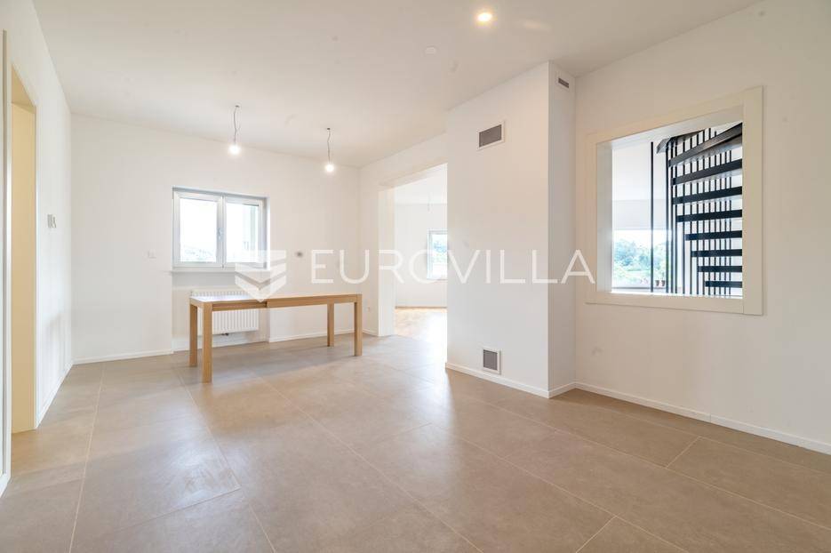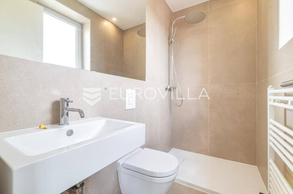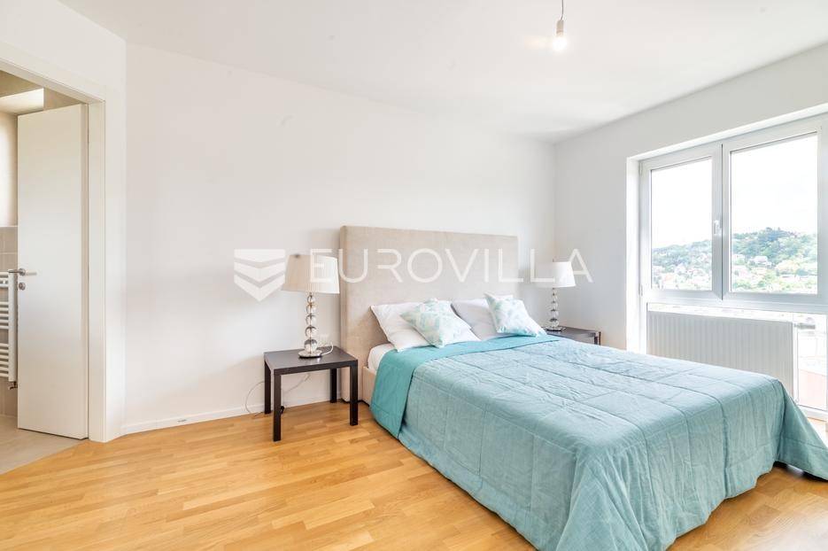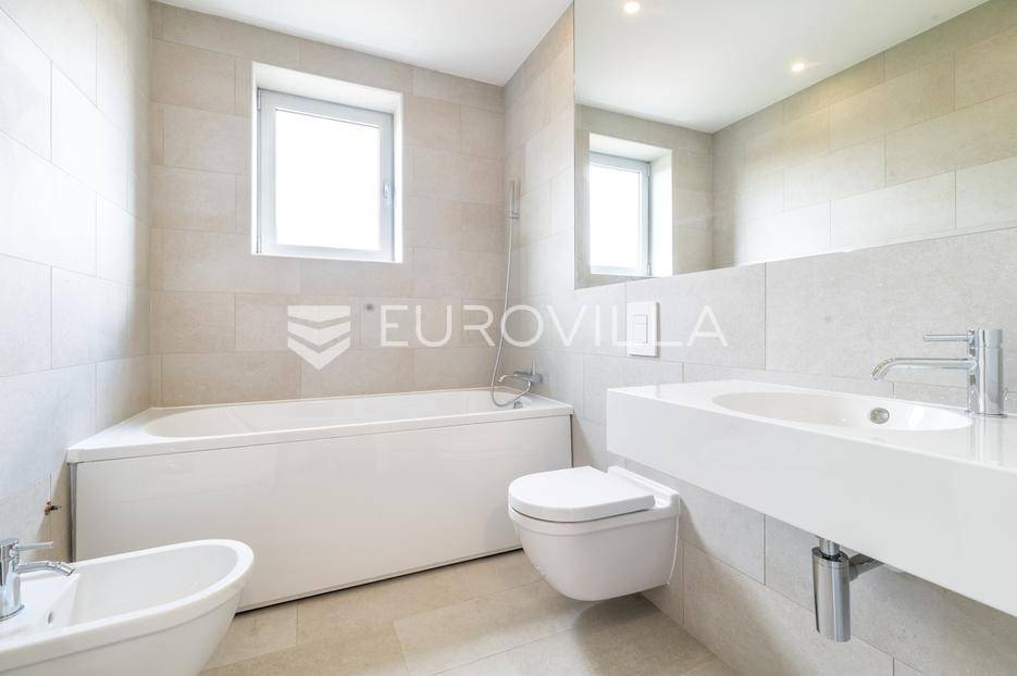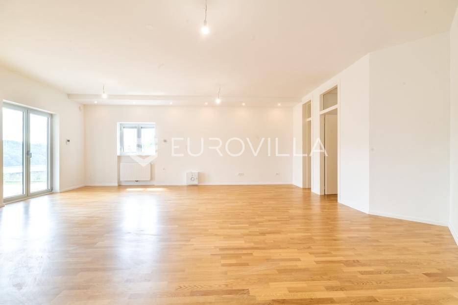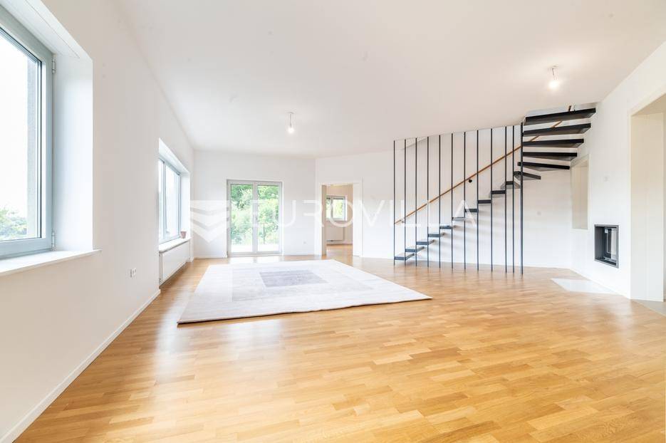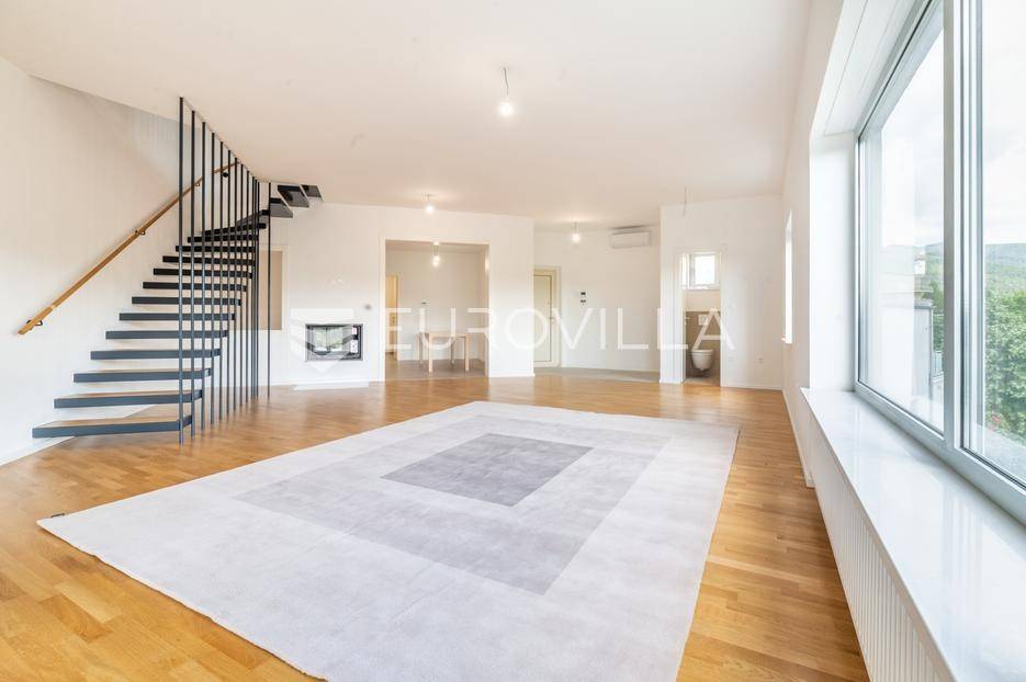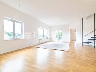 Gračani, NOVOGRADNJA, moderna zgrada s ukupno 4 stana s zasebnim ulazima, izgrađena na 4 etaže na odličnoj lokaciji s prekrasnim otvorenim pogledima. Mirna uvučena ulica u neposrednoj blizini svih sadržaja potrebnih za kvalitetan obiteljski život.STAN B - dvoetažan peterosoban stan u suterenu i prizemlju, zatvorene površine 202,46 m2, vrt 29,62 m2, natkrivena terasa 12,30 m2, nenatkrivena terasa 12,31 m2, loggia 2,29 m2, vanjsko parkirno mjesto 12,50 m2, garaža 17,34 m2. Ukupno obračunski netto korisna površina 228,66 m2. Sastoji se od ulaznog prostora, dnevnog boravka s izlazom na terasu i vrt, kuhinje s blagovaonicom, ostave, master sobe s prostranom garderobom i kupaonicom, gostinjskog wc-a na prvoj etaži, tri spavače sobe, dvije kupaonice, vešeraja i loggie na drugoj etaži.Stan odlikuje visoki stupanj opreme i tehnologije u pogledu instalacija i upravljanja istima, dok energetska učinkovitost zadovoljava najviše standarde. Visoko kvalitetna oprema: aluminijska stolarija, električne rolete, plinsko grijanje, klimatizirani stanovi, topla veza garaža stan, zasebni ulazi za svaki stan, protuprovalna ulazna vrata, hrastov parket I klase, vrhunska keramika i sanitarna oprema, kamin, otvoreni pogledi s terasa i vrtova…Položajem se nalazi u blizini javnog prijevoza, Meridijan shopping centra, škole, vrtića… Do Trga Bana Jelačića 20 min tramvajem.Za sve ostale informacije stojimo na raspolaganju.... Više na eurovilla.hr, ID: 213173