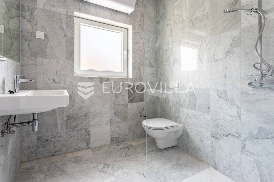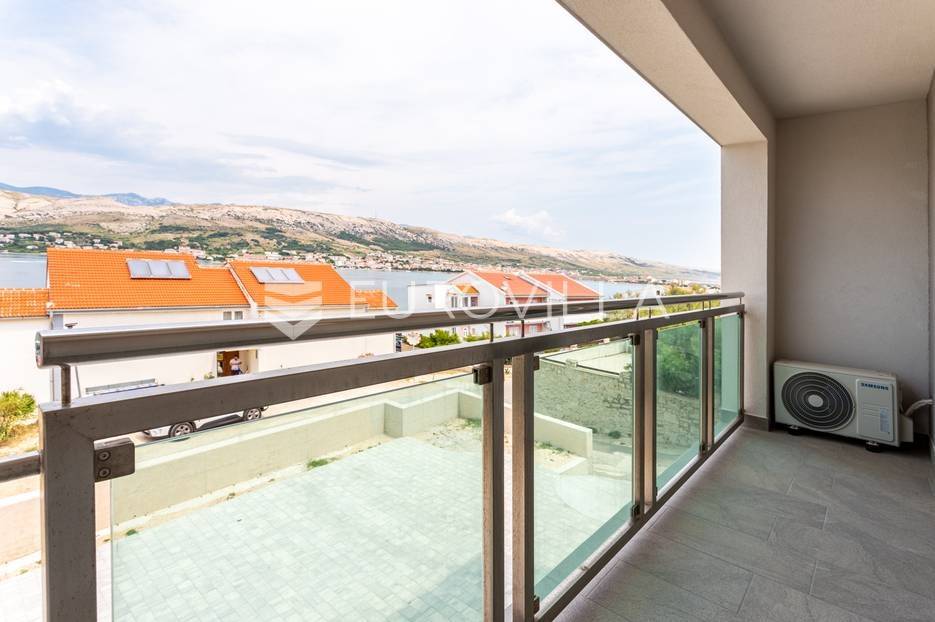 Otok Pag, Pag, Ulica Marka Marulića, NOVOGRADNJA.Urbana villa s ukupno pet stanova nalazi se na udaljenosti 100 m od prekrasne pješčane plaže. Svaki apartman ima balkon ili terasu s pogledom na more i jedno vanjsko parkirno mjesto.Trosoban aprtman oznake S2 nalazi se u na 1. katu urbane ville i sastoji se od ulaznog pretprostora, dnevne sobe s kuhinjom i blagovaonicom površine 20 m2 i izlazom na loggiu 5,21 m2 s koje se pruža pogled na more, prve spavaće sobe 12,28 m2, druge spavaće sobe 10,90 m2, kupaonice s tuš kabinom 4,00 m2 te vanjskog parkirnog mjesta 16,50 m2.Svi podovi su mramorne ploče, klimatiziran, vanjska rasvjeta je na solarne panele, stanari nemaju zajedničkih troškova, dok je rasvjeta na stubištu vezana za svaki apartman i pali se na senzor. Svaki stan ima odvojeno brojilo za struju i vodu.Izvrsna mirna lokacija, s prekrasnim pogledom na grad Pag i more, udaljena pješice do centra grada svega 10 min lagane šetnje.Odlična investicija, cijena je fiksna, a kupac ne plaća porez na promet nekretninama.Za sve ostale informacije nas slobodno kontaktirajte.... Više na eurovilla.hr, ID: 237898