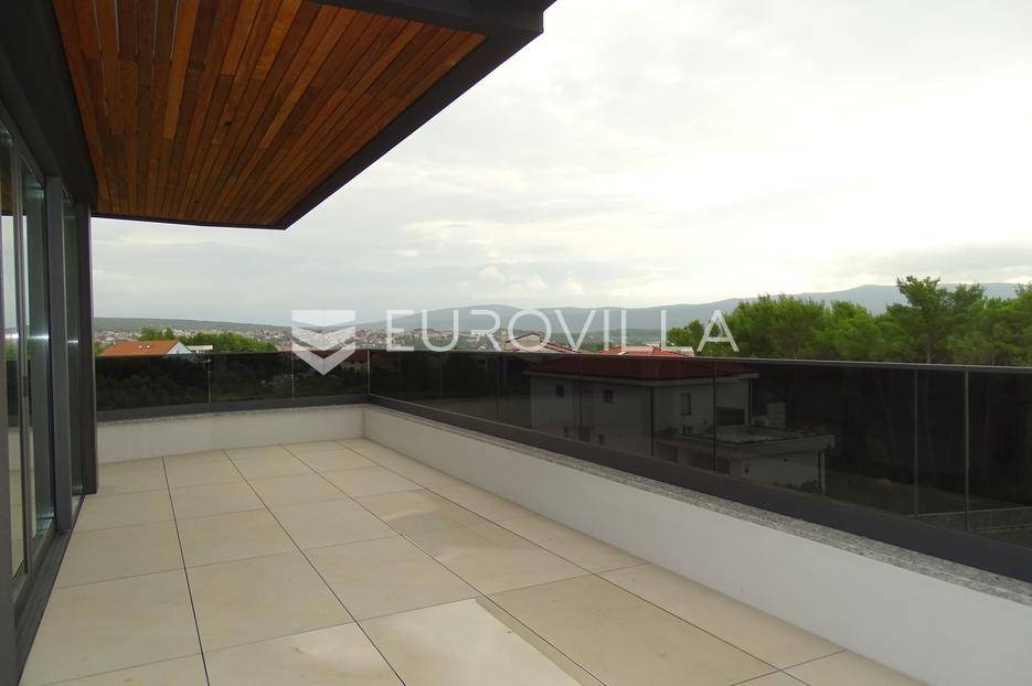 Grad Krk, svega 500 m od mora, prodaje se vrhunski penthouse smješten na drugom katu moderne stambene zgrade višeg standarda.Stan se sastoji od tri prostrane spavaće sobe, svaka s vlastitom kupaonicom, te prostranog open space dnevnog prostora s kuhinjom i blagovaonicom. Velike južne i istočne staklene stijene osiguravaju obilje prirodnog svjetla i izlaz na veliku, djelomično natkrivenu terasu s pogledom na more i staru gradsku jezgru.Dodatnu vrijednost čini privatna krovna terasa, idealna za lounge zonu, jacuzzi ili ljetnu kuhinju. Nekretnini pripadaju spremište u suterenu i dva parkirna mjesta u dvorištu zgrade.Penthouse je opremljen vrhunskim materijalima i sustavima: podno grijanje i hlađenje, aluminijska stolarija s troslojnim staklima, električne žaluzine, dizajnerska keramika, hrastovi parketi i luksuzna sanitarna oprema.Za dodatne informacije i razgledavanje stojimo vam na raspolaganju.... Više na eurovilla.hr, ID: 284259