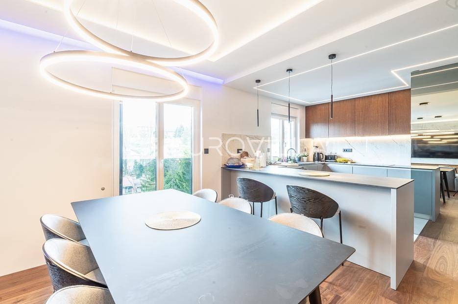 Pantovčak, Goljak, luksuzno uređeni trosoban stan 95 m2 na 1. katu manje zgrade za najam.Prvi najam, potpuno preuređensmart home,vrhunski opremljen i namješten stan na idealnoj lokaciji.Sastoji se od ulaznog hodnika, open space dnevnog boravka s kuhinjom i blagovaonicom, dvije spavaće sobe, kupaonice, gostinskog toaleta i prekrasne terase s pogledom na zelenilo, idealnom za opuštanje na svježem zraku ili druženje s prijateljima i obitelji. Podno grijanje osigurava ugodnu temperaturu tijekom cijele godine, pružajući dodatni komfor i luksuz.Opremljen vrhunskim pametnim sustavom, ovaj stan nudi napredne mogućnosti kontrole osvjetljenja, grijanja, sigurnosti i zabave putem pametnih uređaja, a pregršt ugradbenih ormara pružaju praktično rješenje i maksimalnu iskoristivost prostora.Idealna lokacija, blizina svih bitnih sadrzaja. Ostale informacije na upit.... Više na eurovilla.hr, ID: 291670