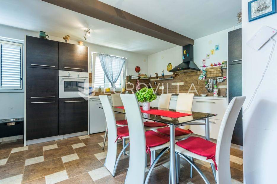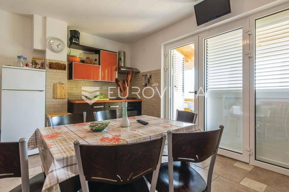 Zadar, Kruševo, lijepa kuća na zemljištu površine 300 m2, sa tri zasebne stambene jedinice.U prizemlju kuće nalazi se trosoban apartman sa kuhinjom, blagovaonicom, dnevnim boravkom te kupaonicom.Na drugoj etaži nalaze se dva dvoetažna apartmana koji se sastoje od dvije spavaće sobe, kuhinje, blagovaonice i kupaonice. Svi apartmani imaju zaseban ulaz i pripadajuću terasu.U podrumskom prostoru nalazi se konoba te pomoćna kuhinja.U lijepo uređenom dvorištu nalazi se prostor za druženje i blagovanje.Osiguran parking za osam automobila.Kuća se prodaje potpuno namještena.Nalazi se na izvrsnoj lokaciji, na svega 150 metara udaljenosti od mora.Ova nekretnina idealna je stanovanje, ali i odlična investicija za sve one koji se žele baviti turizmom.Više informacijana upit.... Više na eurovilla.hr, ID: 307692