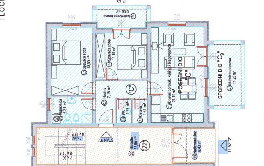 U mirnom i uređenom naselju Žbandaj, nadomak Poreča, prodaje se kvalitetan stan u novogradnji koji predstavlja izvrsnu priliku za kupnju moderne i funkcionalne nekretnine na traženoj lokaciji.Stan ima neto površinu od 75 m², dok ukupna korisna površina iznosi 85 m². Posebnu vrijednost ovoj nekretnini daje prostrani pripadajući vrt površine čak 200 m², koji pruža iznimnu razinu privatnosti i komfora. Ova vanjska površina idealna je za uređenje mediteranskog vrta, dječje zone za igru, lounge prostora ili ljetne kuhinje, čime stan dobiva dodatnu dimenziju kvalitete stanovanja.Raspored stana je suvremen i maksimalno funkcionalan. Ulazni hodnik vodi u prostrani open space prostor u kojem su smješteni kuhinja, blagovaonica i dnevni boravak s izlazom na balkon. Dnevni dio obiluje prirodnim svjetlom te pruža ugodan i prozračan ambijent. Stan raspolaže s dvije spavaće sobe, od kojih jedna ima izlaz na vlastiti balkon, komfornom kupaonicom te dodatnim toaletom za goste.Tijekom gradnje korišteni su vrlo kvalitetni materijali i oprema, s naglaskom na trajnost i udobnost stanovanja. Grijanje i hlađenje riješeni su putem klima uređaja (split sistem), dok su kupaonica i gostinjski toalet opremljeni podnim grijanjem na struju, što dodatno povećava razinu komfora.U cijenu su uključeni spremište u podrumu te dva parkirna mjesta, što predstavlja značajnu dodatnu vrijednost ove nekretnine.Nekretnina se nalazi na odličnoj lokaciji s kompletnom infrastrukturom potrebnom za svakodnevni život. U neposrednoj blizini dostupni su trgovina, škola i vrtić, dok su Poreč i more udaljeni svega nekoliko minuta vožnje.Zahvaljujući kvalitetnoj gradnji, funkcionalnom rasporedu i velikoj okućnici, ova nekretnina predstavlja rijetku priliku na tržištu. Idealna je za miran obiteljski život, ali i kao sigurna investicija s dugoročnom vrijednošću na području Poreča, gdje potražnja za kvalitetnom novogradnjom kontinuirano raste.Za više informacija i razgled, slobodno nas kontaktirajte.... Više na eurovilla.hr, ID: 311978