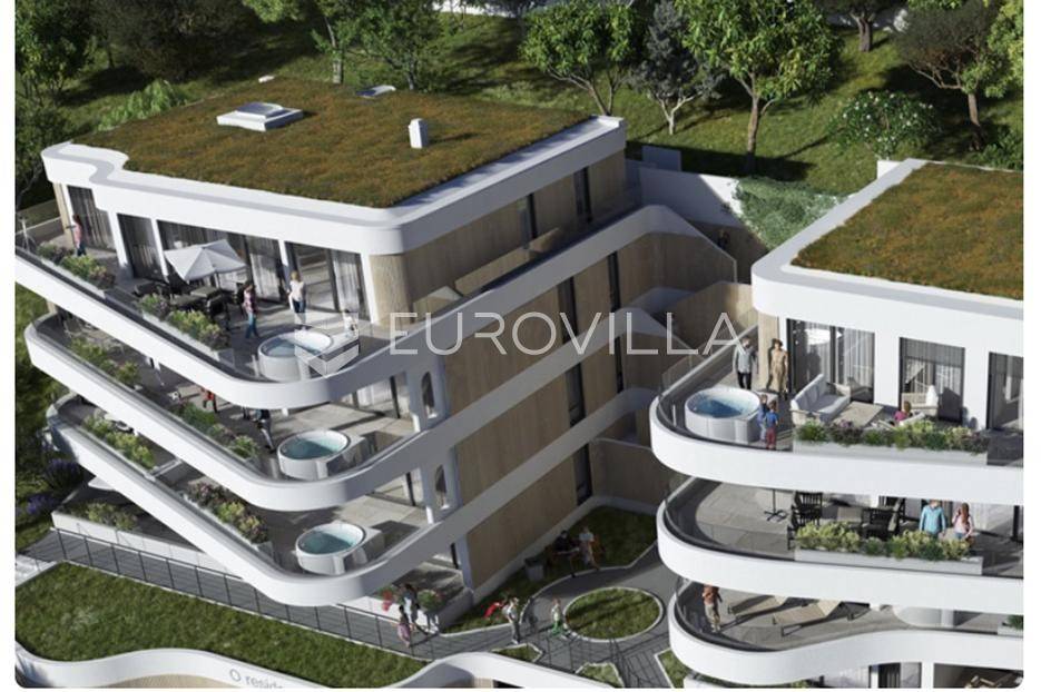 Na prodaju je vrhunski trosobni stan s ukupnom korisnom površinom od 165.17 m², smještenu prizemlju moderne novogradnje na atraktivnoj lokaciji s pogledom na more.Raspored prostorija:Prostrani dnevni boravak otvorenog koncepta s izlazom na terasuModerno opremljena kuhinja s blagovaonicomTri spavaće sobeRadna soba (study)Tri kupaonice s vrhunskom keramikom i sanitarijamaWc za gosteSoba s walk-in garderobom/utility prostoromDva walk-in ormaraImpresivna terasa površine 55.65m² sa pripremom za jacuzzi i prostorom za lounge i objedovanjeKarakteristike:Pogled na more iz dnevnog boravka i terasepriprema za jacuzzi na terasiVelike staklene stijene koje propuštaju obilje prirodne svjetlostiPrvoklasni materijali, parket u sobama, keramika u kupaonicamaPriprema za klimatizaciju i smart home sustavEnergetski učinkovit dizajnLokacija:Nekrtnina se nalazi blizu centra Opatije, čuvenih parkova i plaža, te kulturnih i gastro znamenitosti. Idealna za odmor, dugoročni boravak ili investiciju u luksuzni turistički najam.Za više informacija i razgledavanje stojimo Vam na raspolaganju... Više na eurovilla.hr, ID: 314717