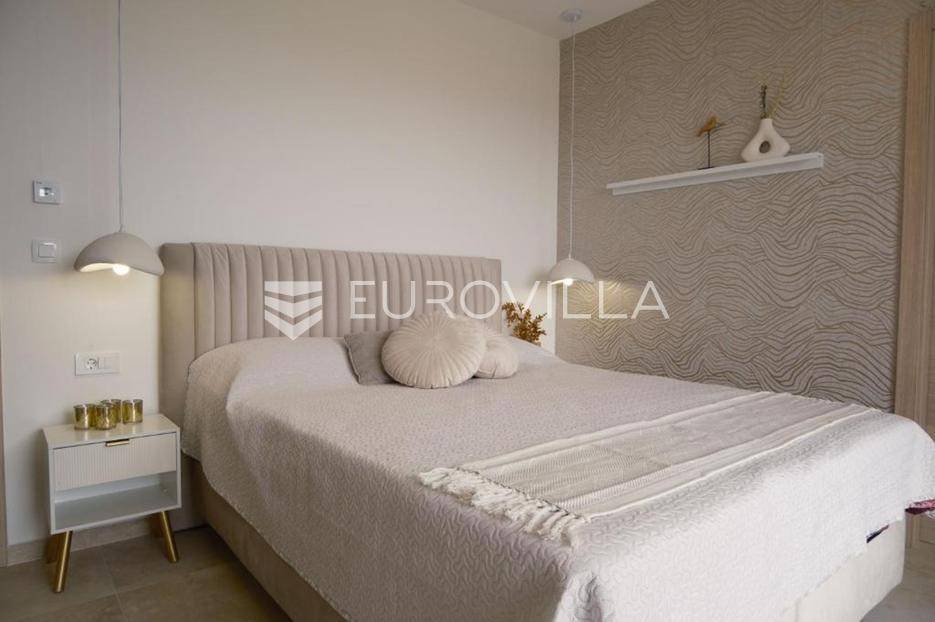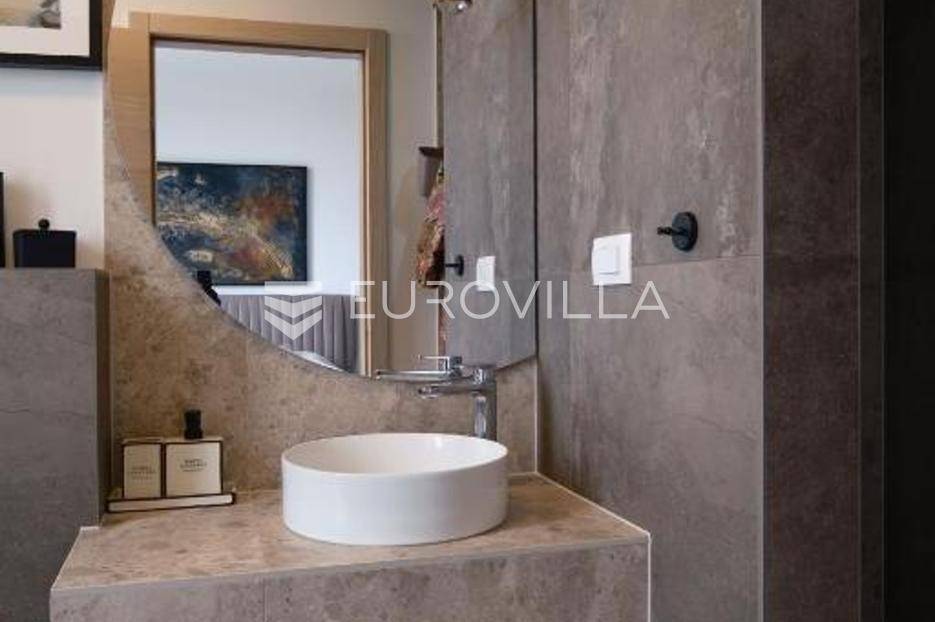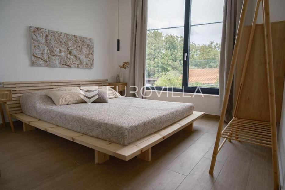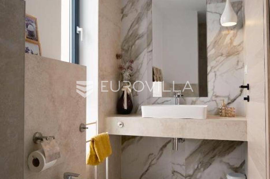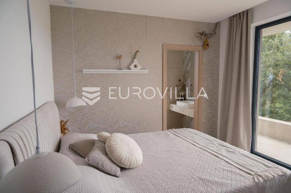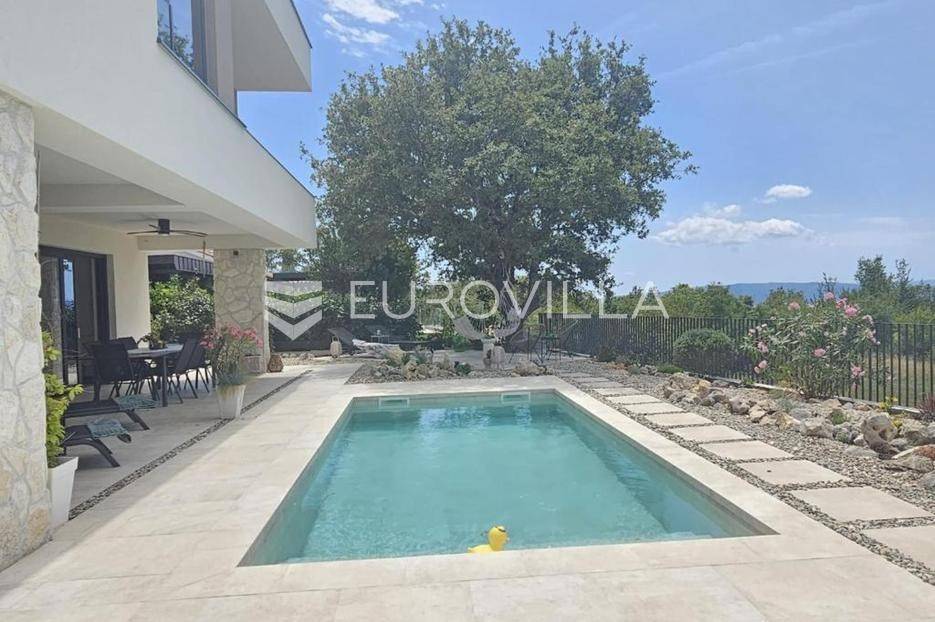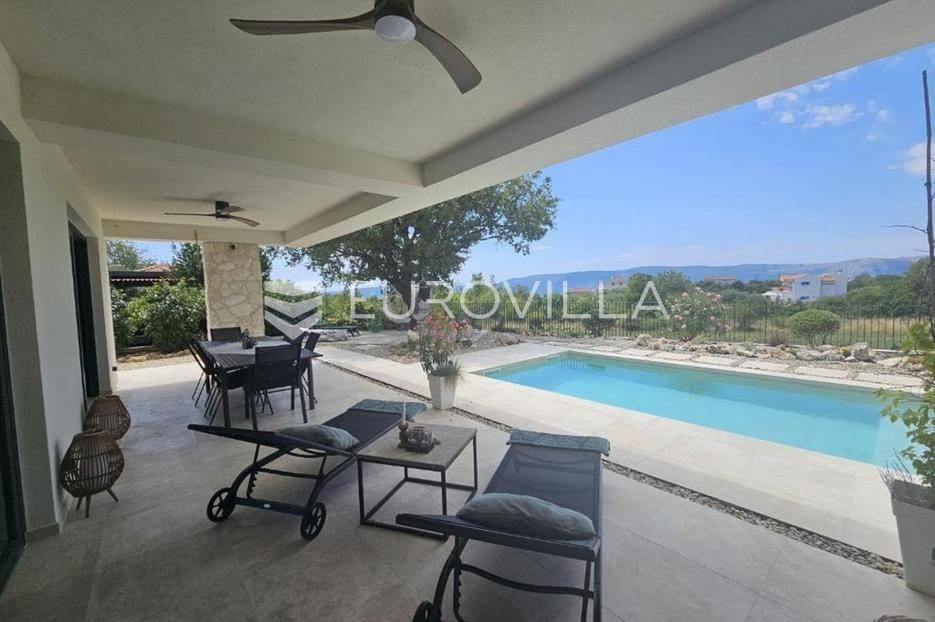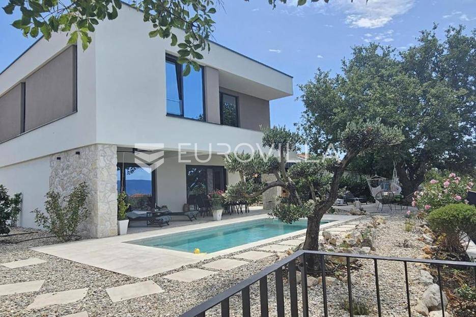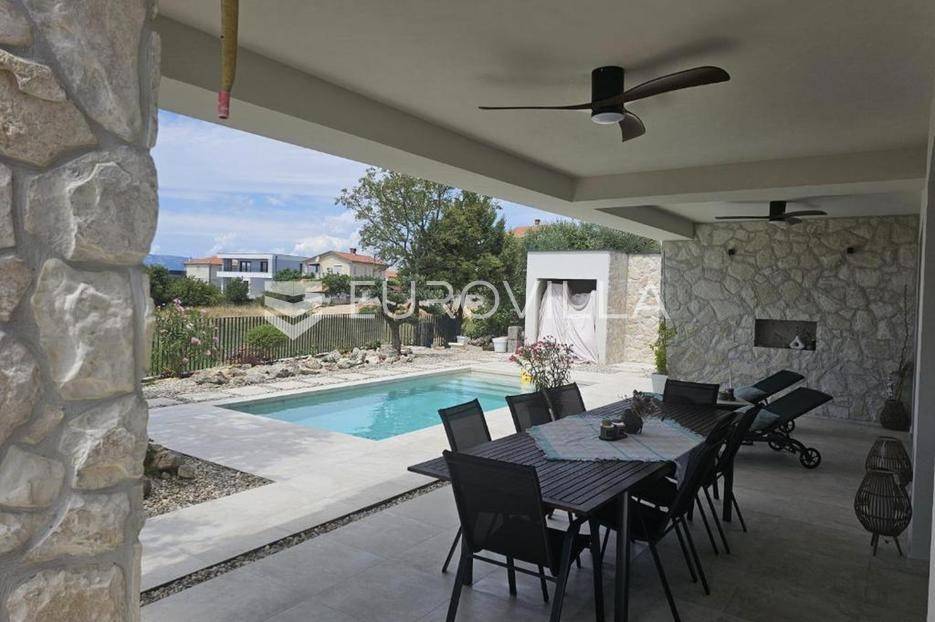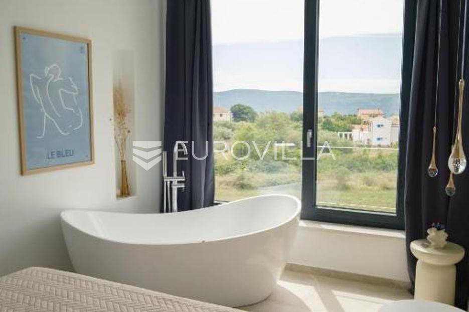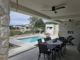 U mirnom naselju Linardići smjestila se ova izuzetna novogradnja luksuzna dvoetažna vila površine 200 m2 na parceli od 444 m2.Južna i zapadna orijentacija osigurava obilje prirodnog svjetla, stvarajući prozračan i ugodan ambijent u četiri prostrane spavaće sobe i četiri elegantno uređene kupaonice. Idealno za obiteljski život ili luksuzni odmor, svaka je prostorija pažljivo osmišljena s naglaskom na kvalitetu materijala. Otvoreni koncept dnevnog boravka i kuhinje stvara fluidan prostor za druženje, a veliki stakleni otvori povezuju interijer s vanjskim oazama i predivnim pogledom.Vanjski prostor je mediteranska idila s impresivnim bazenom, okruženim sunčalištem i uređenim vrtom, idealnim za osvježenje. Za potpuni wellness doživljaj, tu je i privatna sauna, savršena za relaksaciju.Ova nekretnina je izvanredna investicija. Blizina mora, netaknute prirode i svih sadržaja otoka Krka čine ovu vilu idealnom za stalni boravak, luksuzni odmor ili turistički najam.Za detaljnije informacije stojimo vam na raspolaganju.... Više na eurovilla.hr, ID: 369190